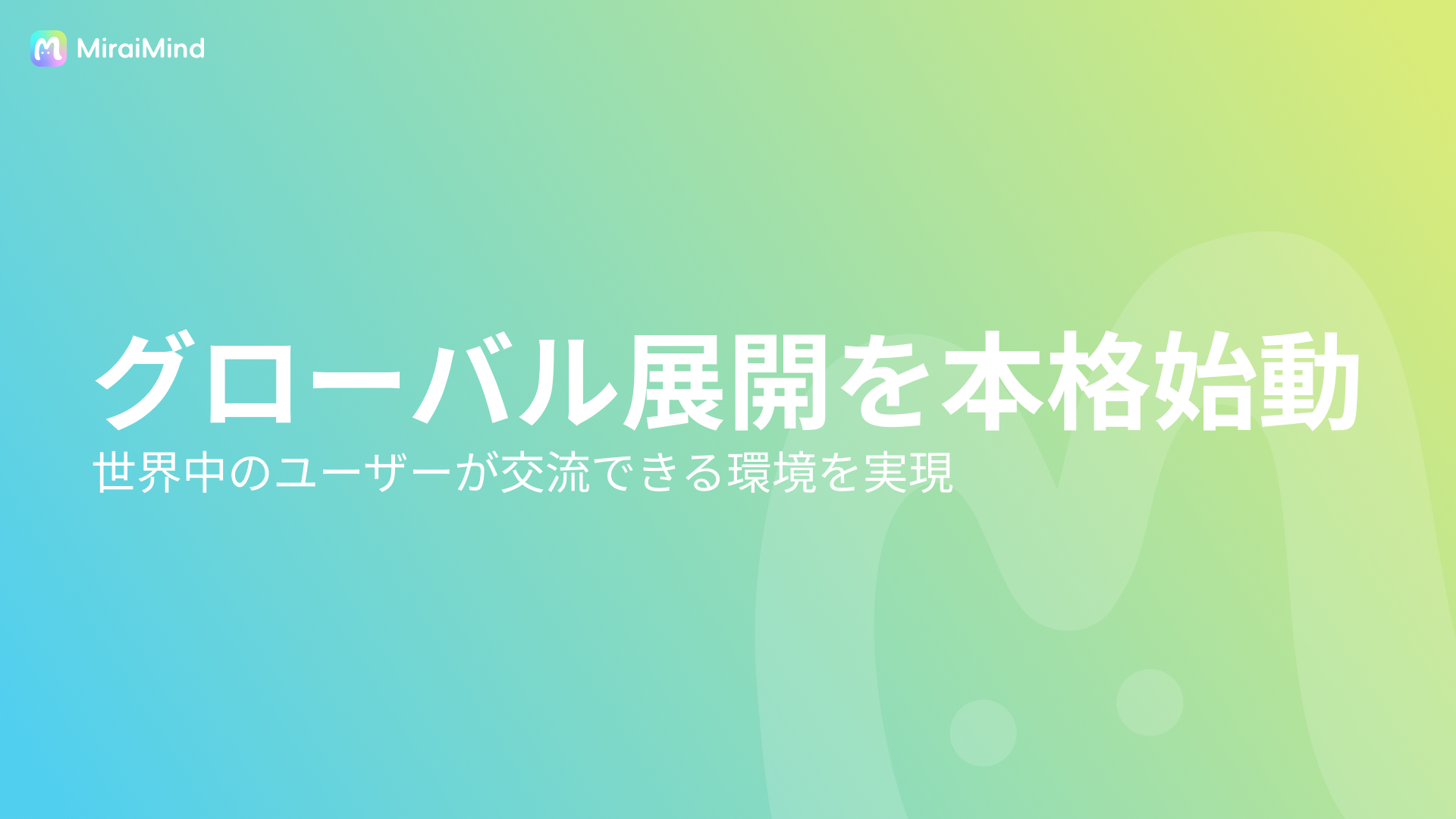 MiraiMindは「安心して、多言語で、世界中の仲間と同じ体験を楽しめる環境」を目指し、国際化を推進しています。