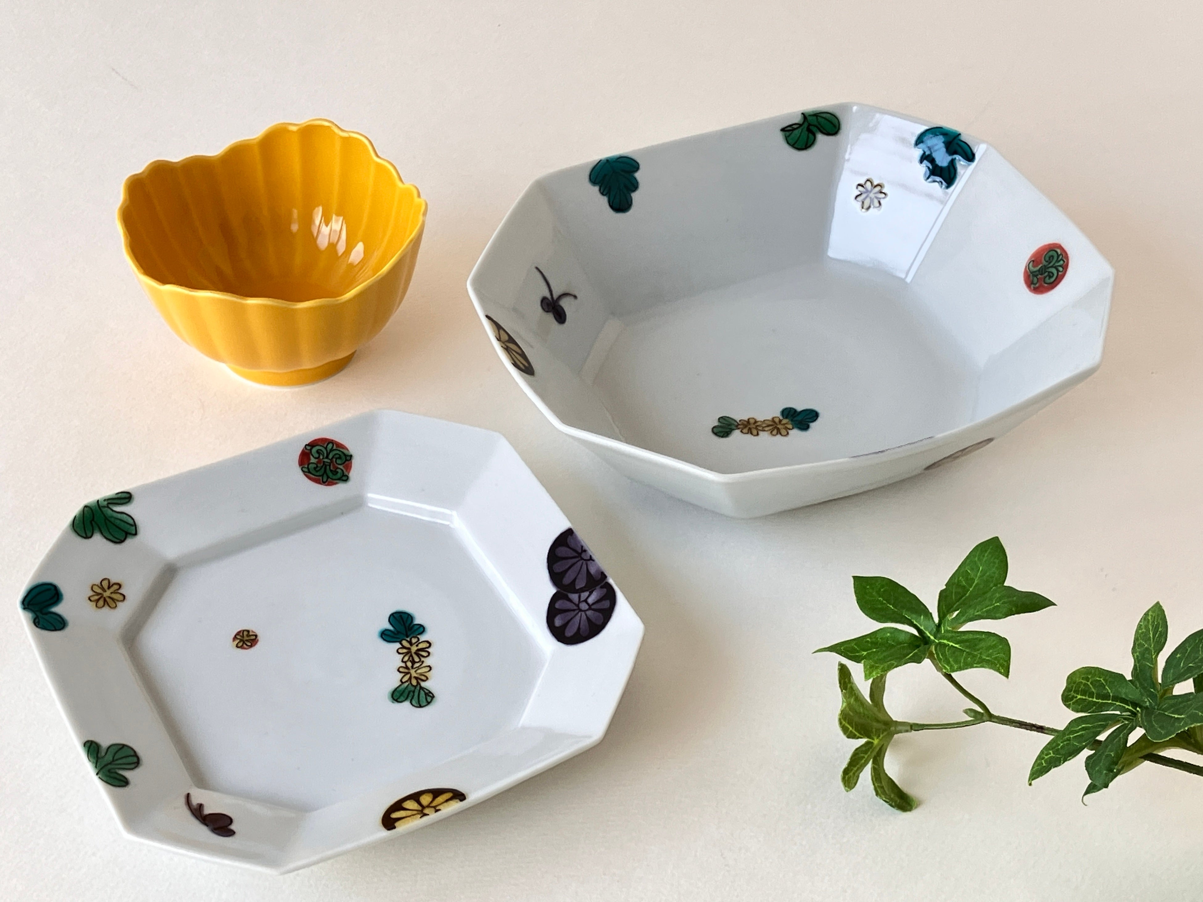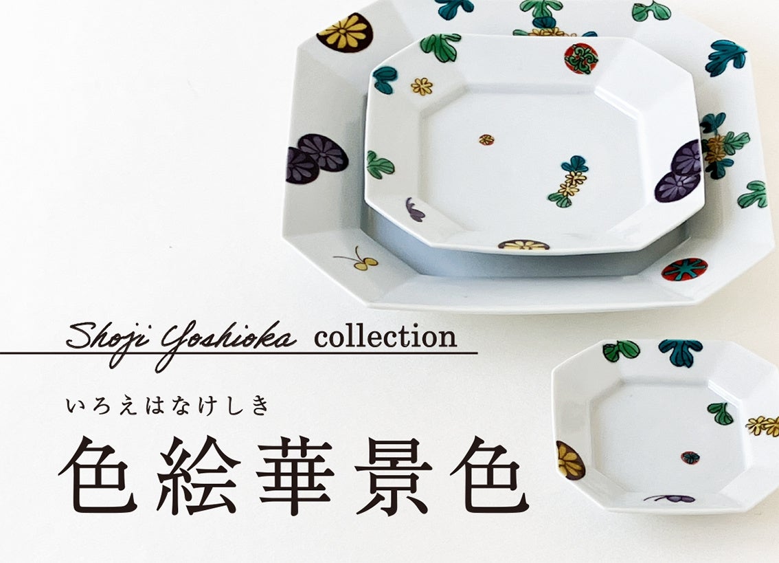 「九谷色絵 隅切角皿」は「色絵華景色」に、