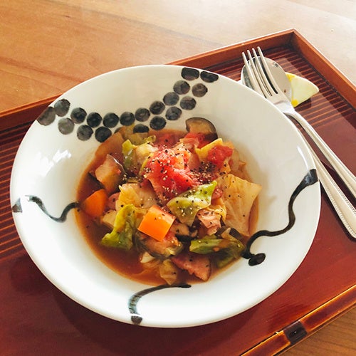 野菜を入れた煮込み料理を鍋いっぱいに作り、