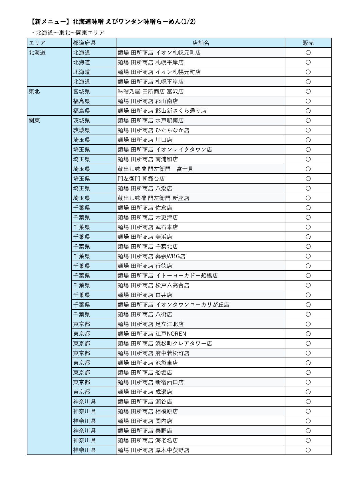 販売店舗:麺場 田所商店 (85店)
