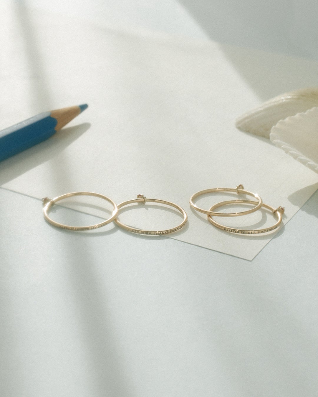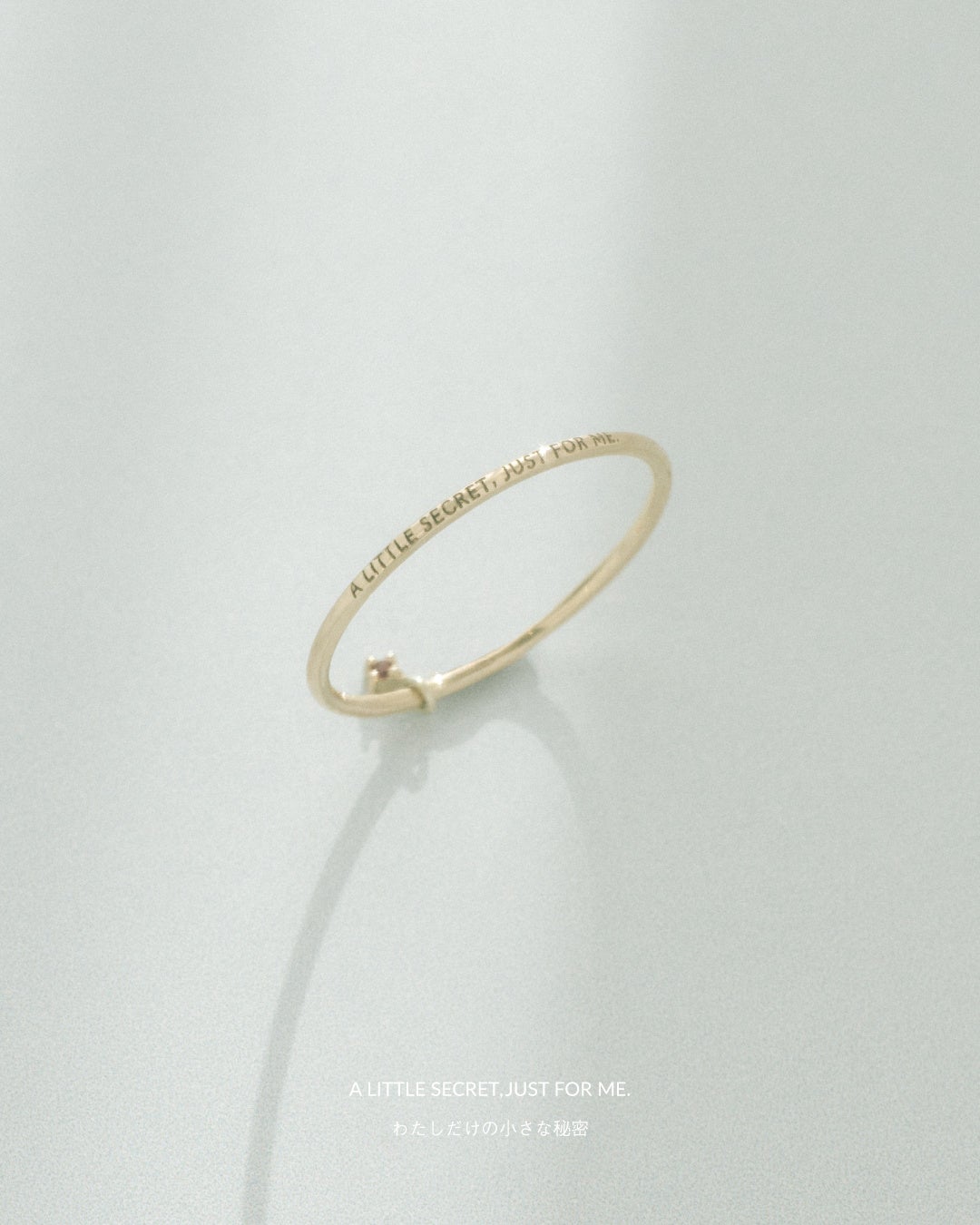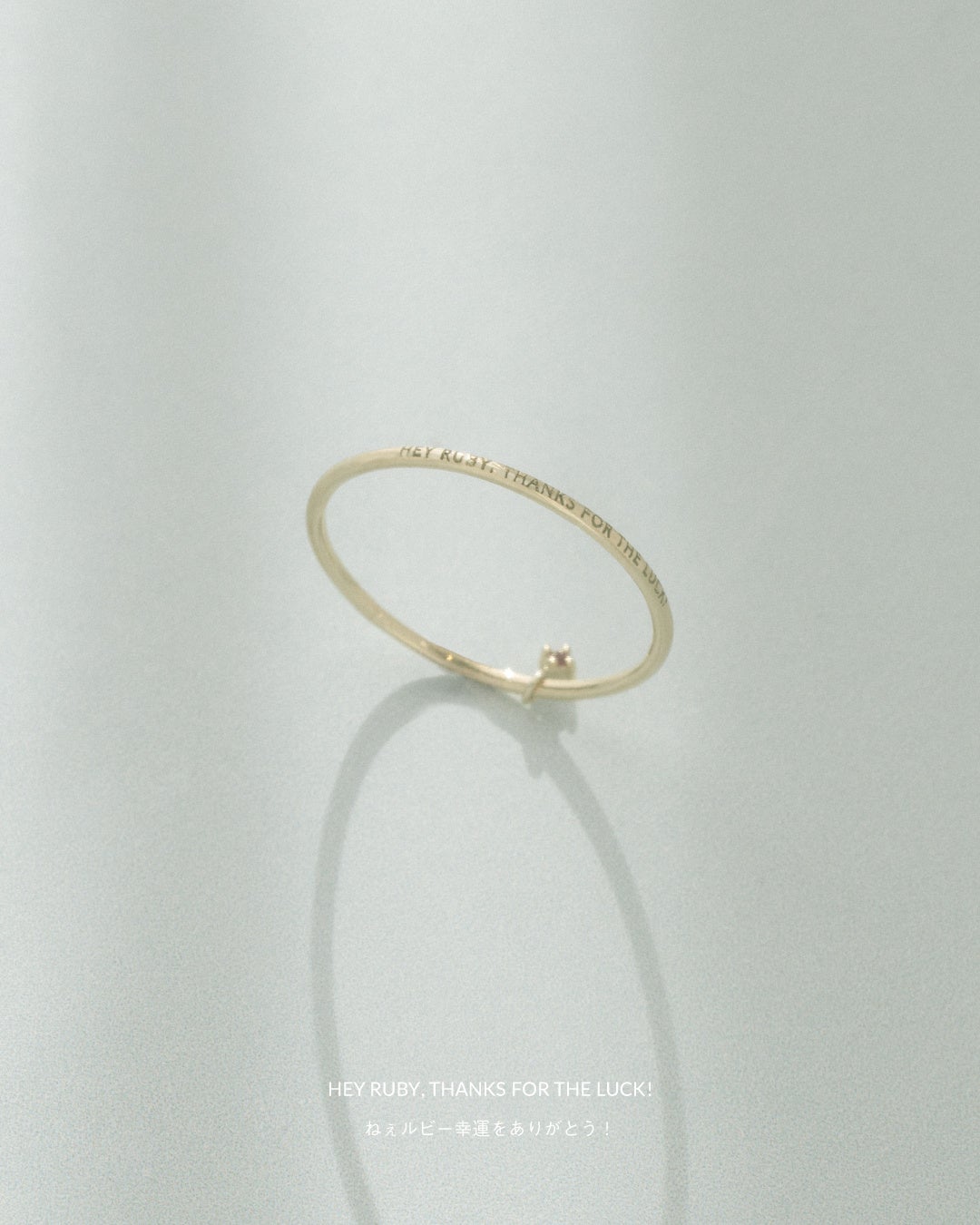 ご自身の大切にしたい言葉を刻めるプレーンタイプの他、"HAPPINESS IS IN MY HAND."(幸せはわたしの手の中に。) "A LITTLE SECRET,JUST FOR ME."(私だけの小さな秘密。) "HEY RUBY,THANKS FOR THE LUCK!" (ねえルビー、幸運をありがとう!) という3種類のメッセージが刻まれたタイプが揃います。