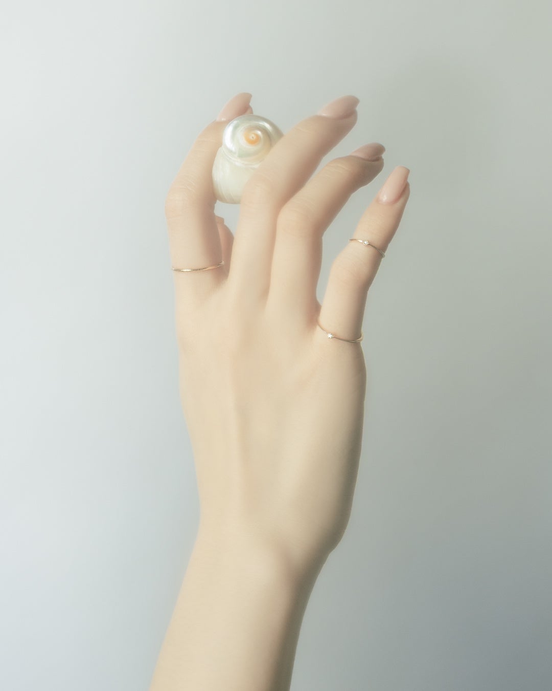 今季のコレクションを象徴する「小指のリング」。ピンキーリング1型と、小指用のファランジリング1型が登場します。