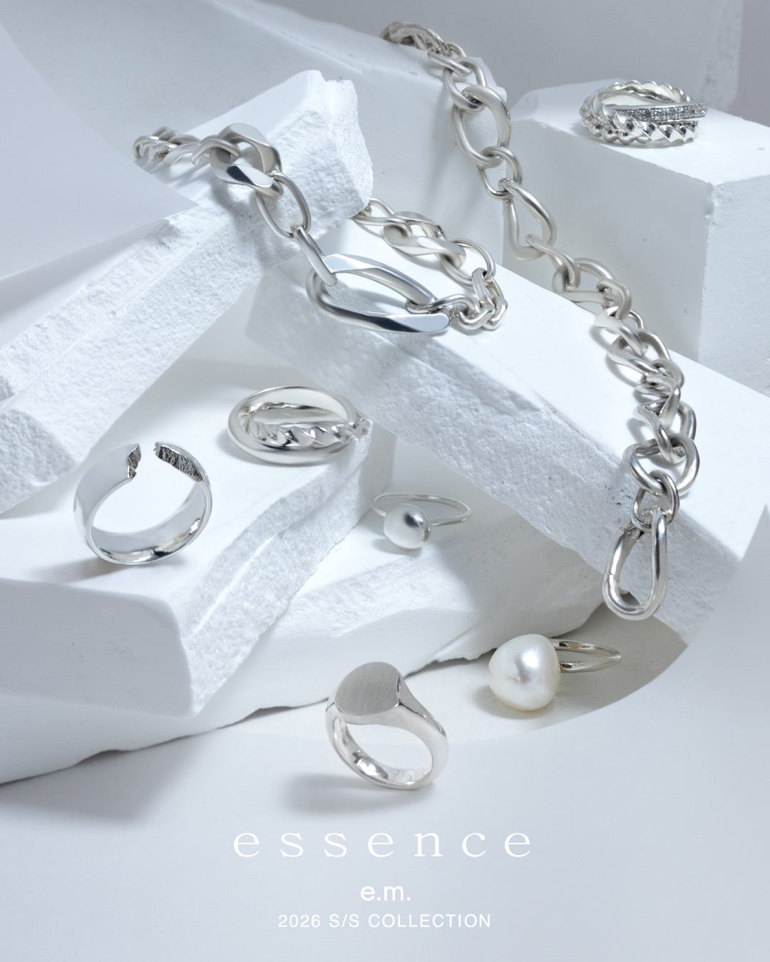 春の訪れを予感させるクリーンなムードの新作ジュエリー。e.m.group 2ブランドのS/S COLLECTIONが2/18発売。