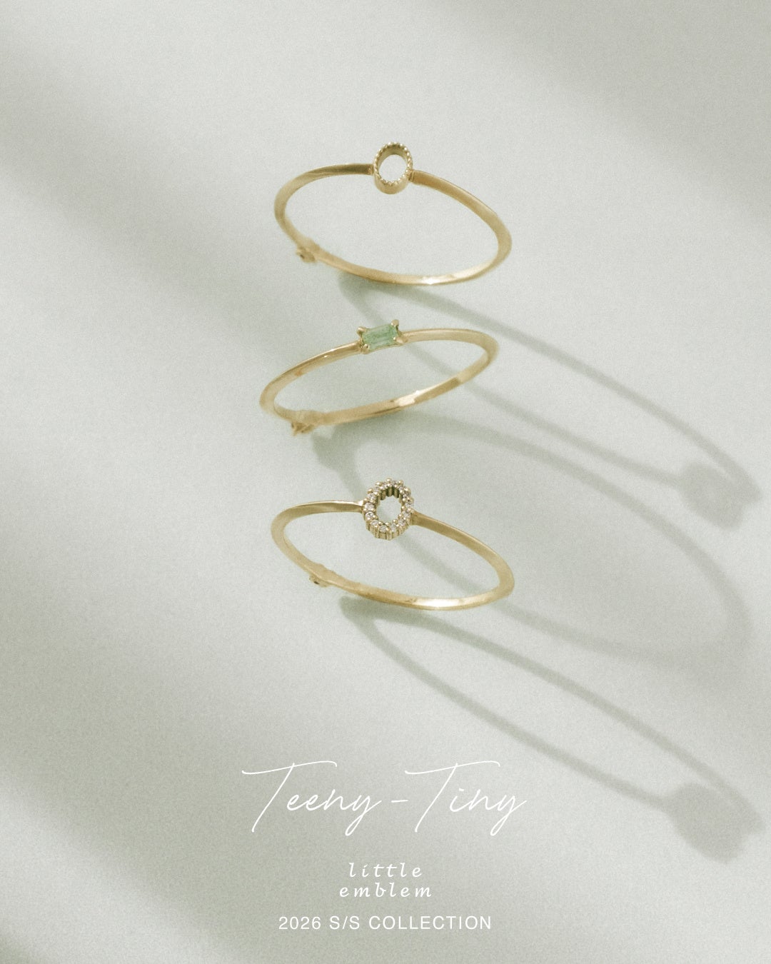 【Teeny-Tiny】シリーズで人気のリングの新作は、オーバル型のミル打ちやダイヤモンドパヴェセッティングがクラシカルで儚げなデザインや、瑞々しいグリーンが爽やかなエメラルドをセットしたデザインで登場。