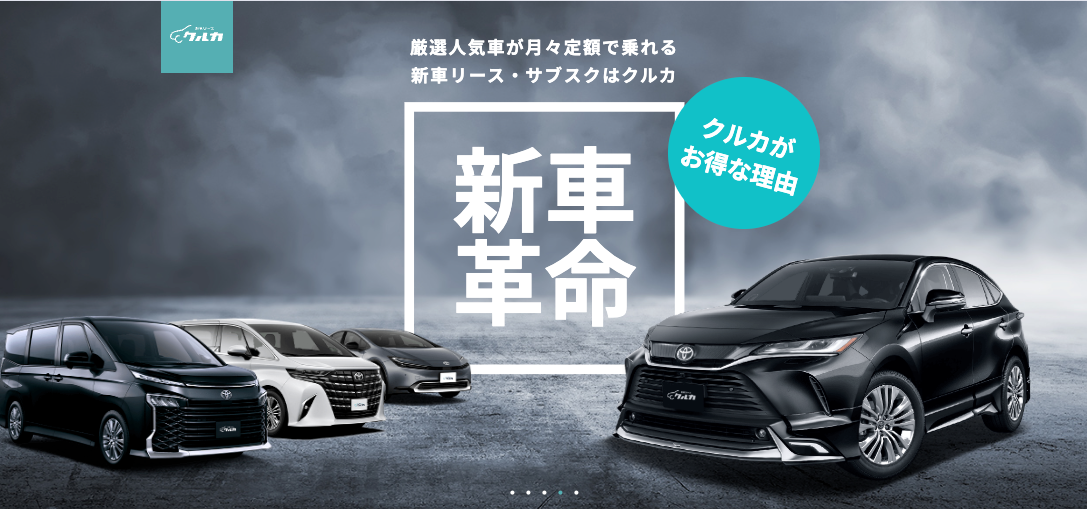 新車カーリース「クルカ」は、頭金0円、ボーナス払い0円、車検、自動車税不要の月々定額でご利用いただける、 最低価格保証のカーリース(サブスクリプション)サービスです。