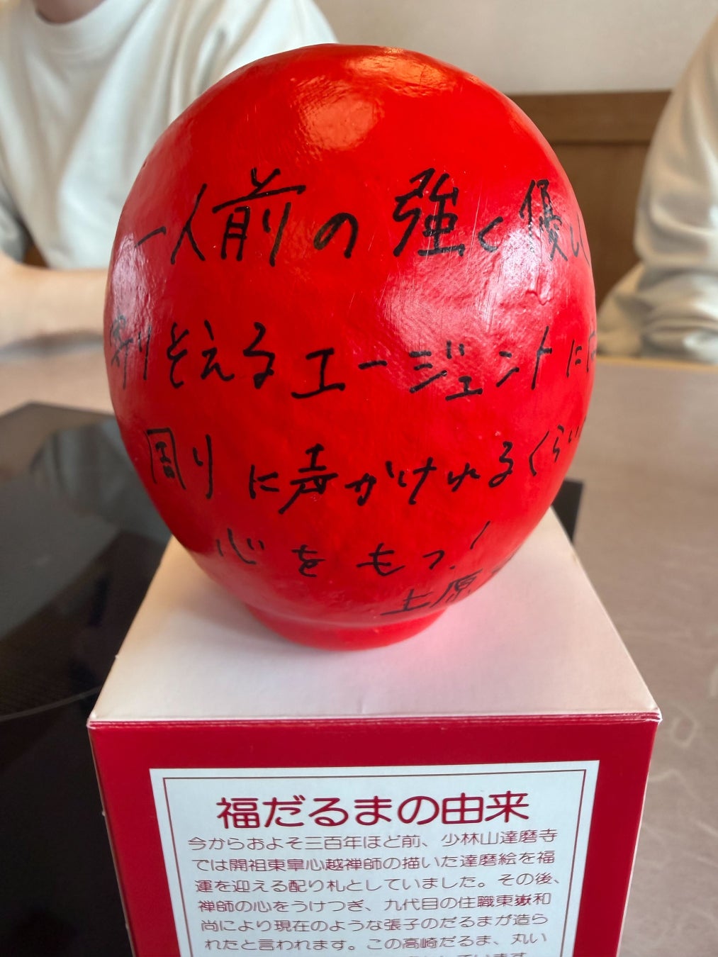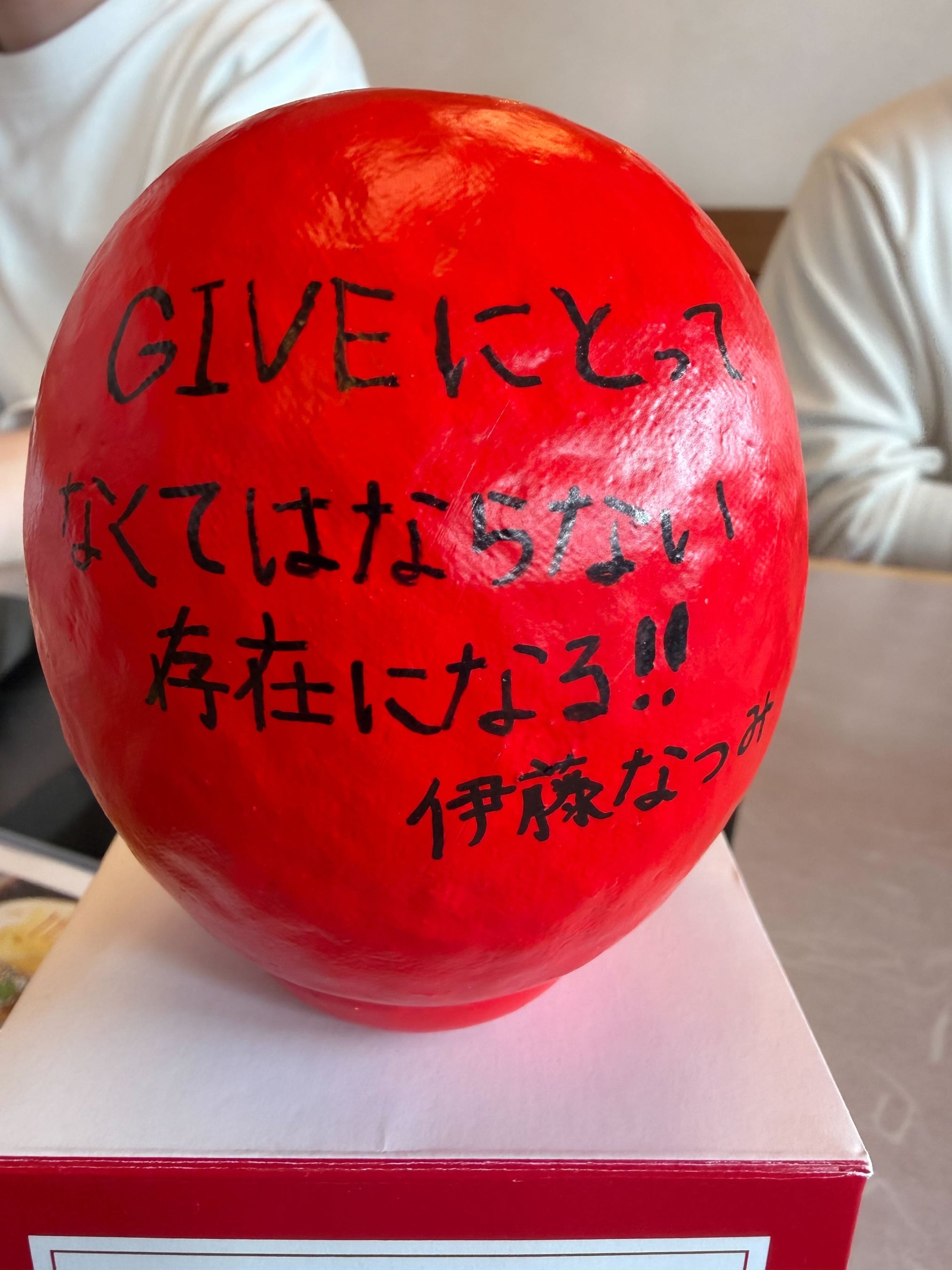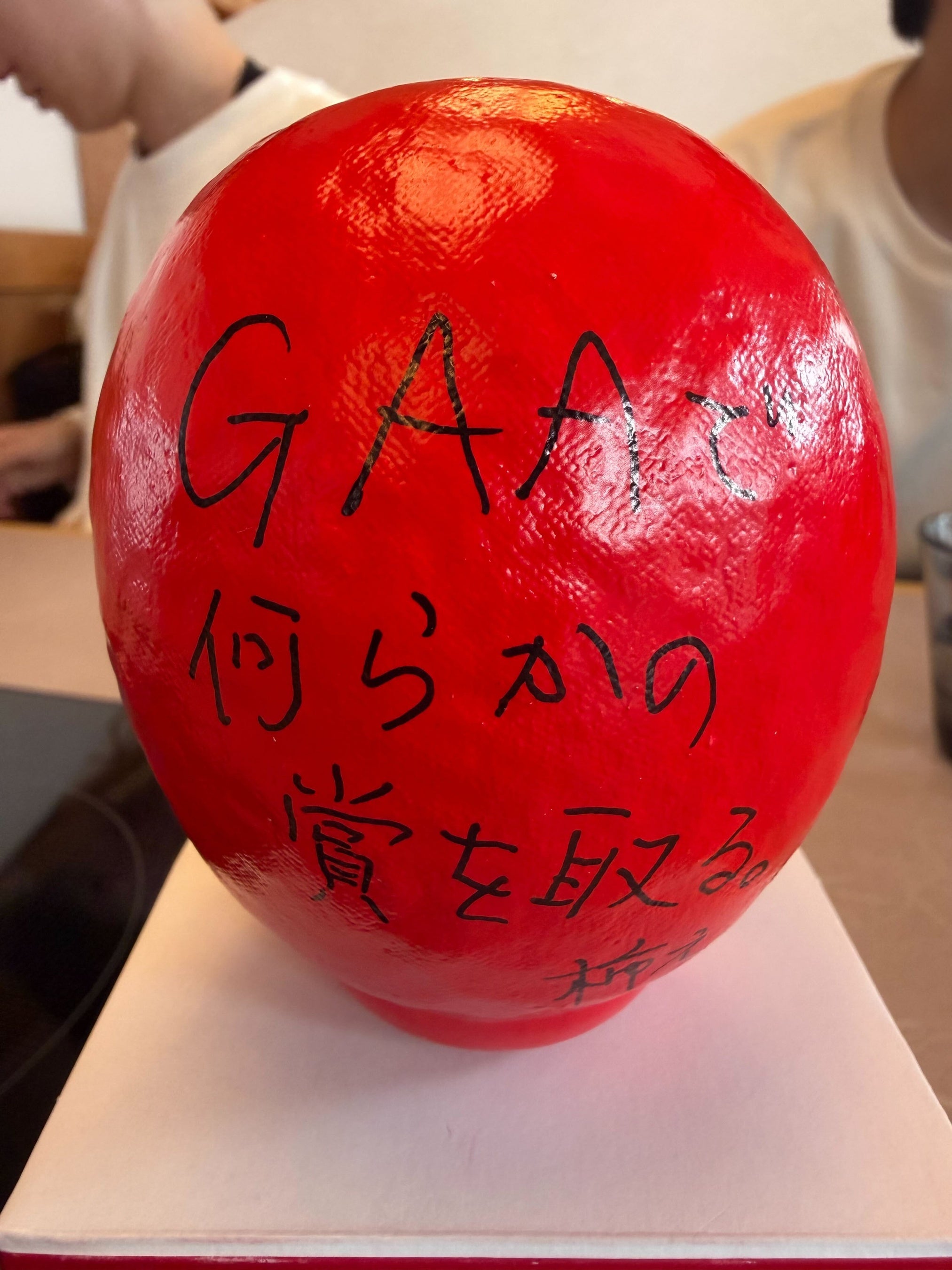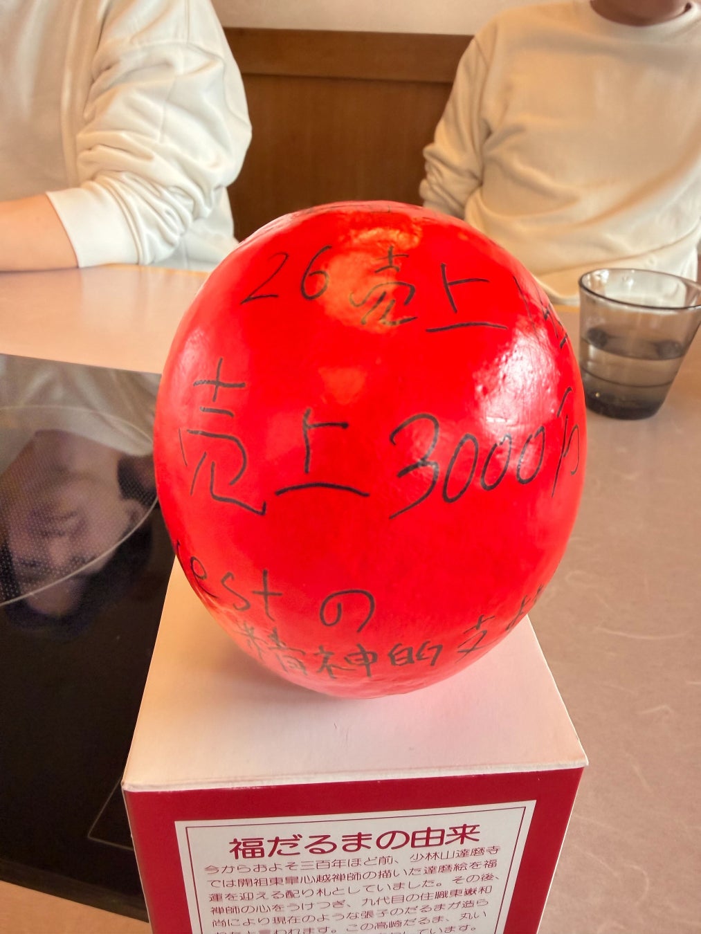 各自が「この1年間で成し遂げること」をだるまに記入。目標達成を自分に約束するため、その場で願いを込めて「左目」を入れました。残る右目は、1年後に目標を達成した際に自分たちの手で入れることを誓っています。