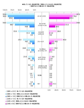 カー用品専門店の認知、利用ともトップは「オートバックス」