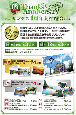 「ららぽーと柏の葉 サンクス4周年大抽選会」