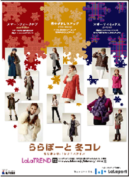 ポイントアップ実施期間中に、ららぽーと首都圏5施設では、「ららぽーと冬コレ」と題して、冬の最新アイテムをご紹介するフェアを開催いたします。