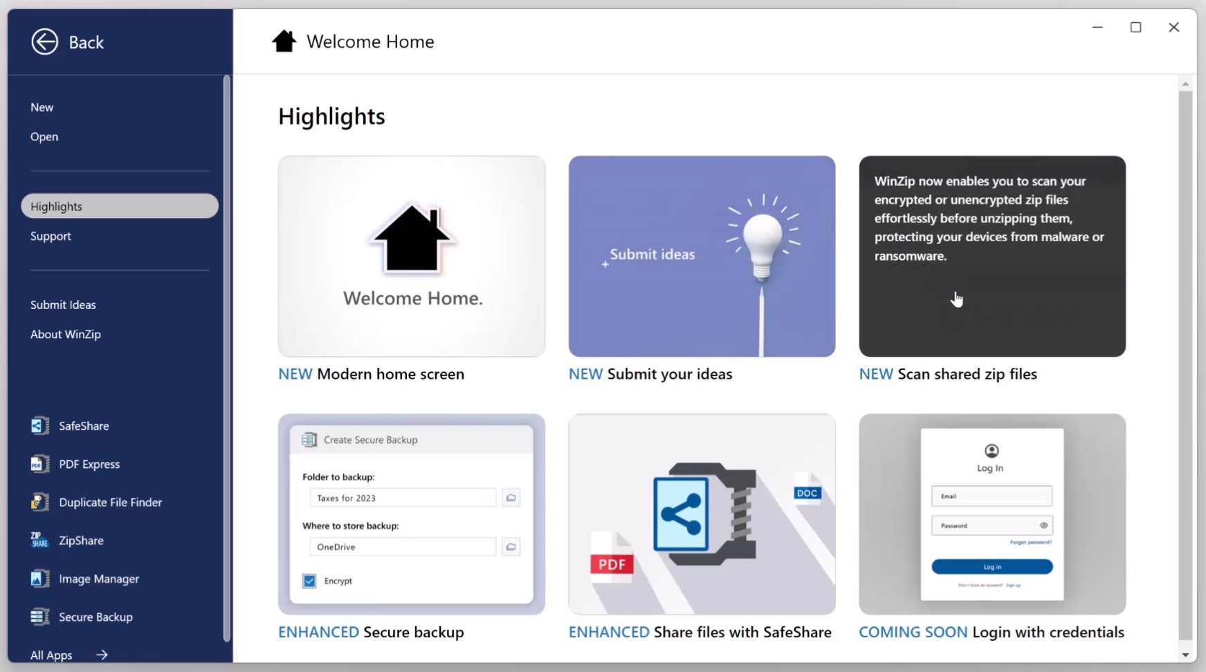 最新版WinZip 28では、ファイルの共有、圧縮、暗号化を効率化し、改善する新機能が満載です。