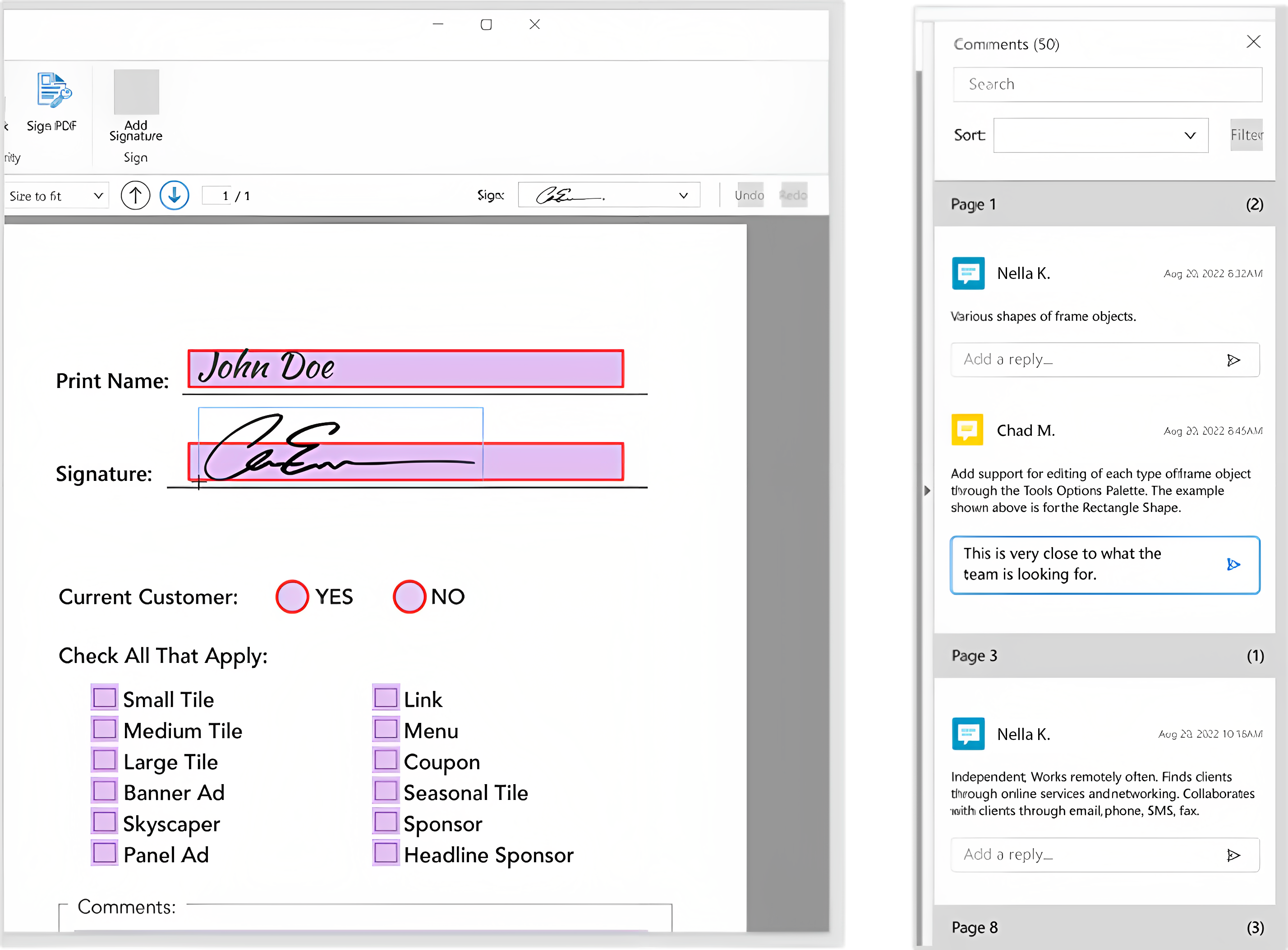 フォーム:フォームの機能改善により、インタラクティブ、非インタラクティブなフォームへの入力や署名の追加がこれまで以上に簡単になりました。