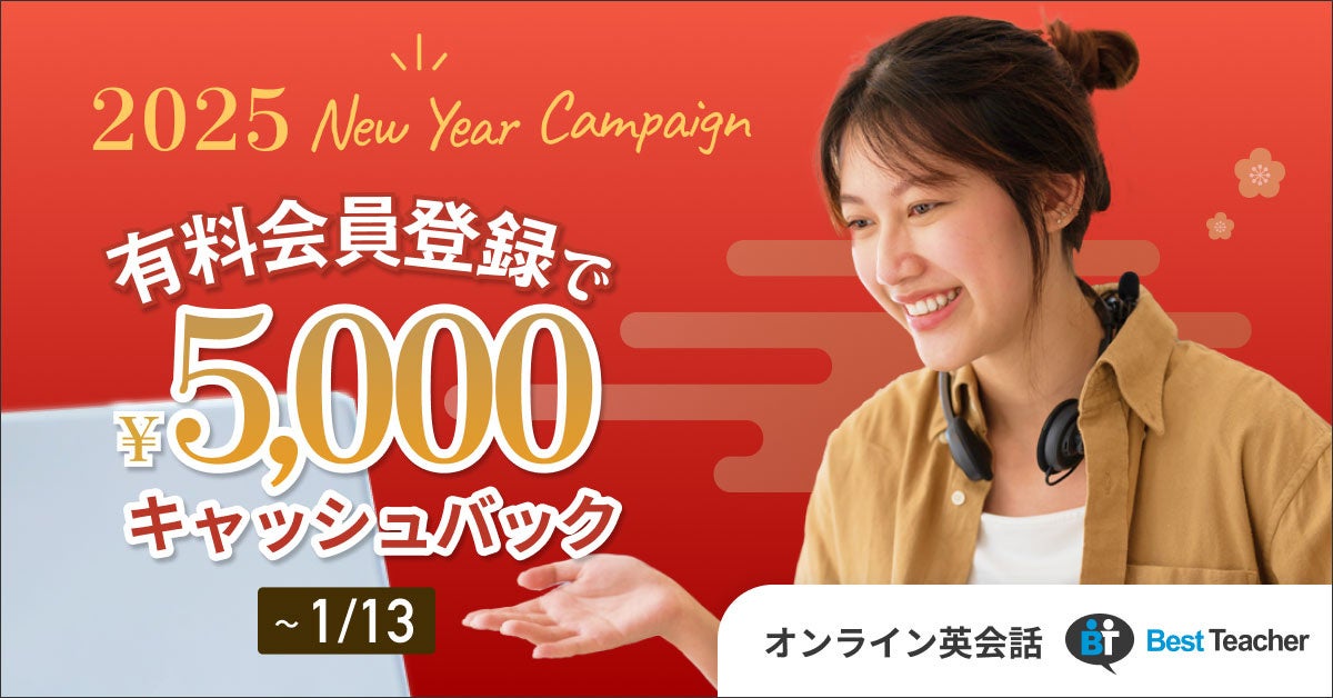 「書いて、話す」オンライン英会話「ベストティーチャー」を運営する株式会社ベストティーチャー(本社:東京都渋谷区、代表取締役社長:高宮敏郎)は、2025年1月1日より「2025 New Year Campaign」を開催いたします。