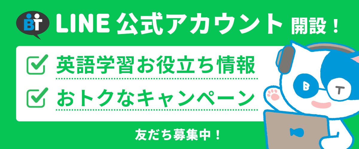 ベストティーチャーの公式LINEアカウントでは、英語学習についてのお役立ち情報や、期間限定のおトクなキャンペーン情報などをお知らせしています。ぜひ友だち登録をお願いします。