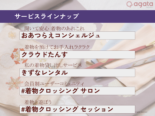 日本文化の重要な軸の1つでもある着物サービスのエントリー層を増やし、着物文化全体をより元気にする取り組みを提案致します。
