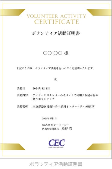 なお、ボランティア活動に参加した子ども達全員に、学校にも提出できる「ボランティア活動証明書」を発行しており、子ども達が「社会貢献」を考えるきっかけ作りも行っています。
