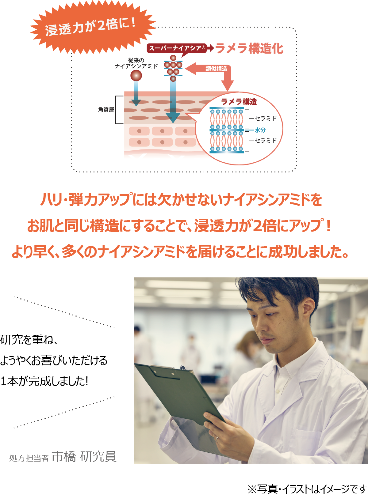 毎日のスキンケアにプラスで使えるポイントケア。話題のナイアシンアミドに特殊技術を加えた「スーパーナイアシア®」を配合しました。