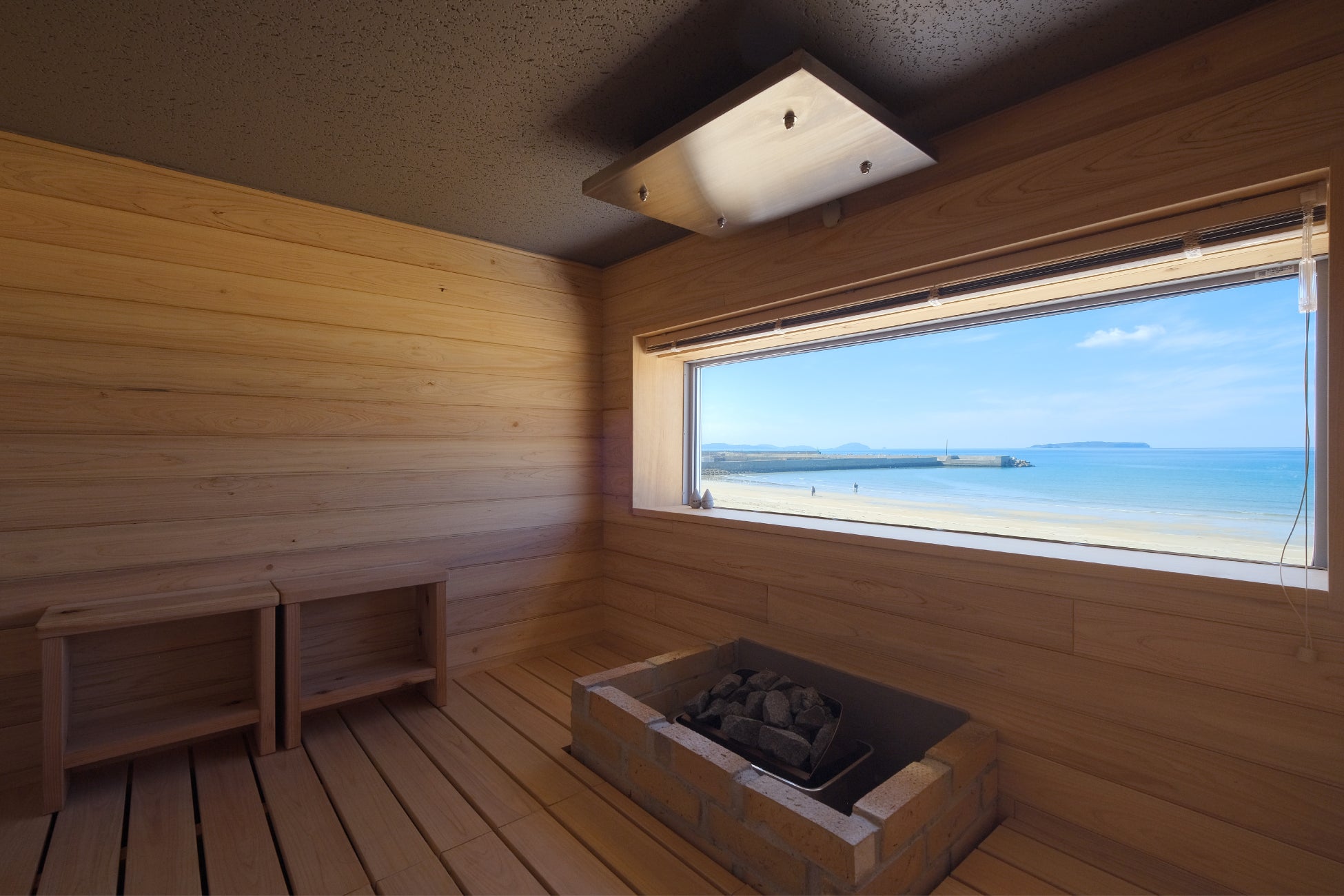 本来の建物のポテンシャルを最大限に活かし、1階はレストラン、2階はサウナ付きルーム、屋外はBBQとイベントスペースという3業態を組み合わせた空間構成です。