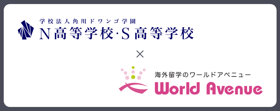 海外留学支援を行う株式会社ワールドアベニュー(本社: 東京都新宿区、代表取締役社長: 松久保 健太)はN高等学校・S高等学校を運営する学校法人角川ドワンゴ学園(所在地: 沖縄県うるま市、理事長: 山中伸一)と業務提携を締結致しました。ワールドアベニューは海外進学を希望するN高等学校・S高等学校の生徒を対象にオーストラリア各大学への留学説明会・留学サポートを開始致します。