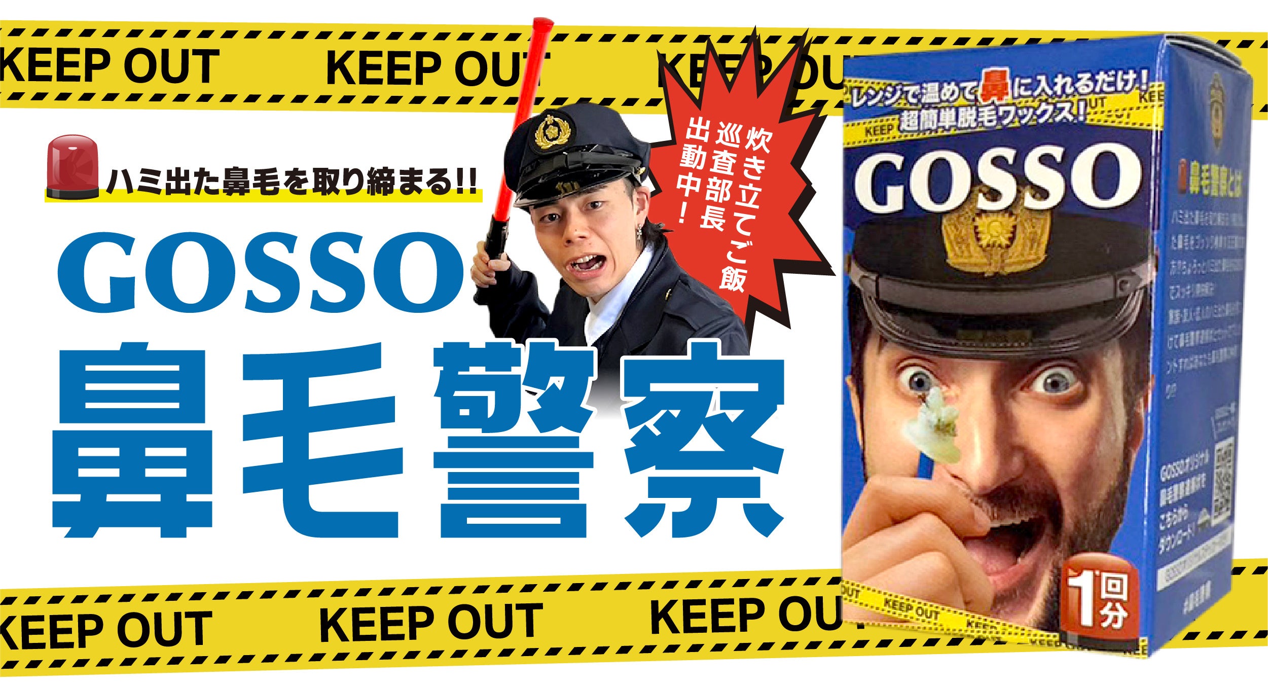 ハミ出た鼻毛を取り締まる!! 飛び出した鼻毛をゴッソリ検挙する、正義の味方!? ちょろっとハミ出た鼻毛をGOSSOでスッキリ爽快解決! GOSSOが送り出した鼻毛検挙組織。それが鼻毛警察である!家族・友人・恋人・職場の人のハミ出た鼻毛を見つけて検挙!?
