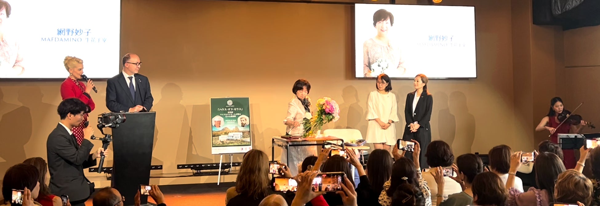 大阪・関西万博 - フランス館のオフィシャル ゴールド パートナー全5社のひとつ、マイクロバイオームとミトコンドリア科学を応用した長寿研究のパイオニアであるNINAPHARM(ニナファーム)主催のもと「長寿」をテーマにしたカンファレンスが開催され、日本を代表するフラワーアーティスト網野妙子(あみの たえこ)氏が、ヴァイオリンの名器ストラディバリウスの生演奏をバックに華やかなバラのアレンジメントパフォーマンスを披露しました。