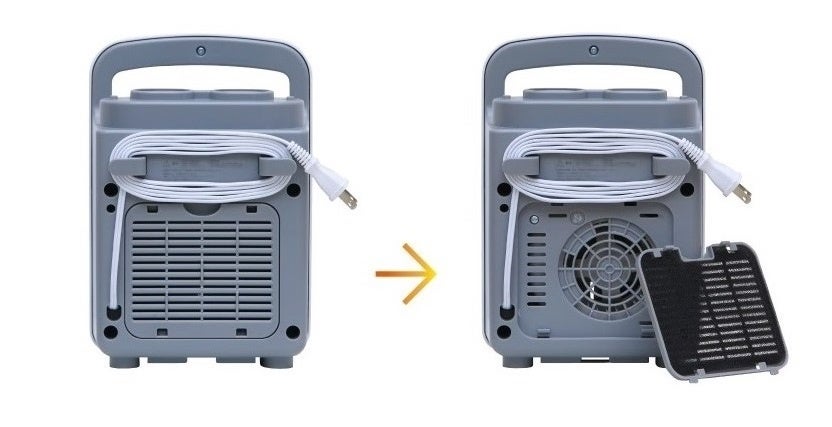 背面の吸気口カバーを外すだけで、簡単にフィルター掃除が可能