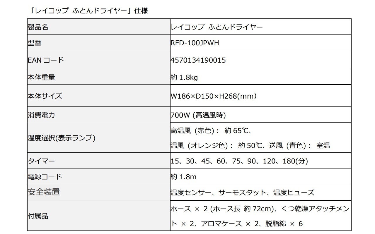 パワフルな高温風を送り込み、快眠環境を生み出す 布団乾燥機『レイコップ ふとんドライヤー』1/17発売