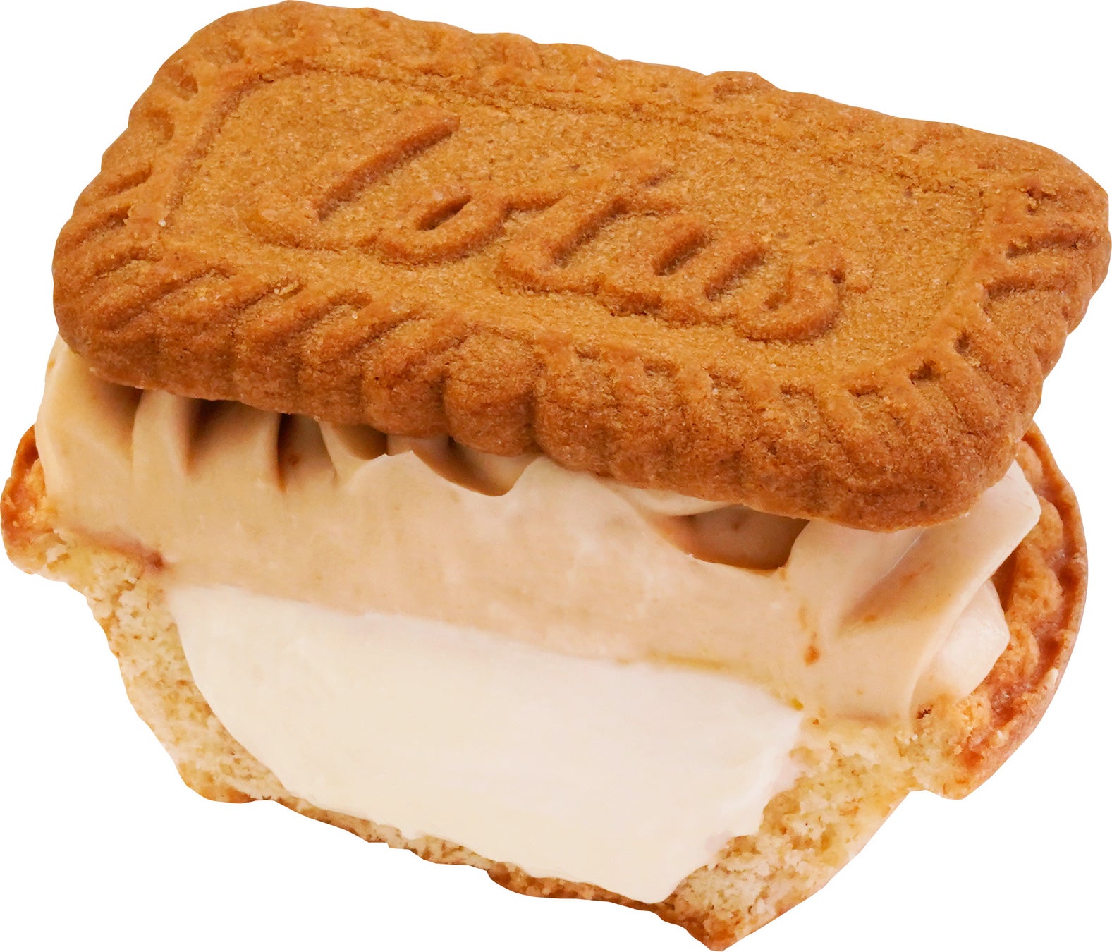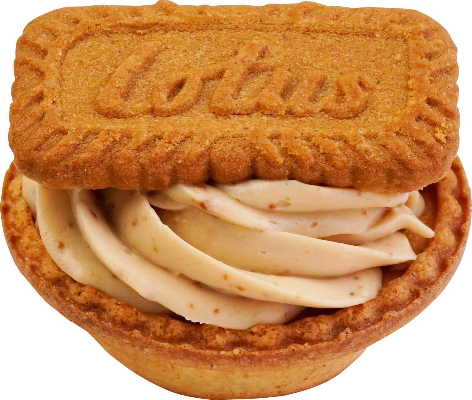 チーズタルトの表面にビスケットスプレッドを混ぜ合わせた特製クリームを重ね、その上に「ロータスビスコフ」をまるごと1枚飾りました。