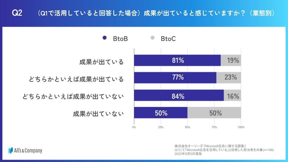 一方で、「どちらかといえば成果が出ていない」と回答した企業のうち84%がBtoB企業で、成果に対する評価は二分されていました。