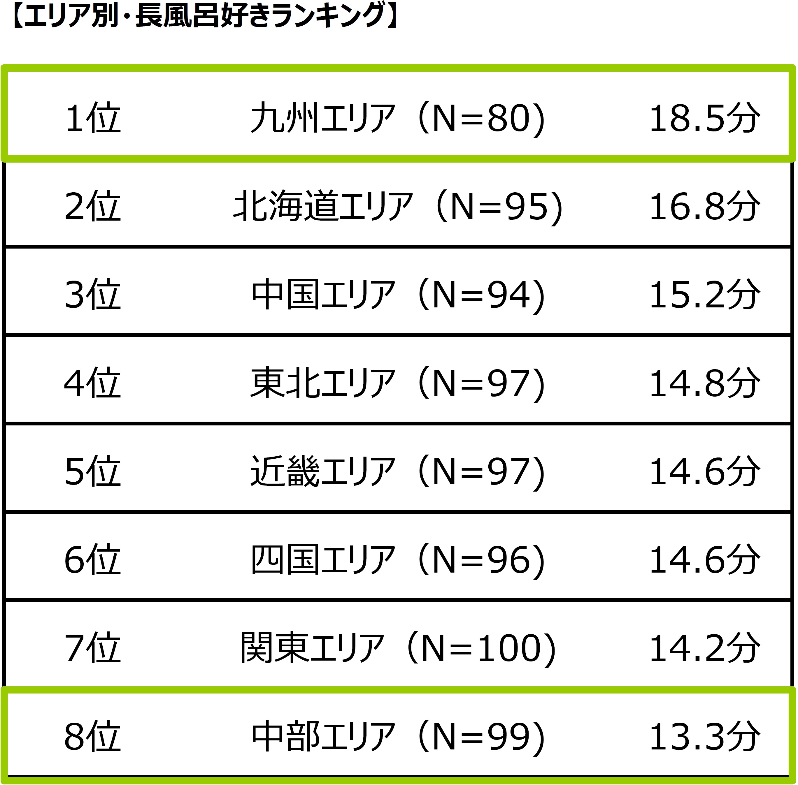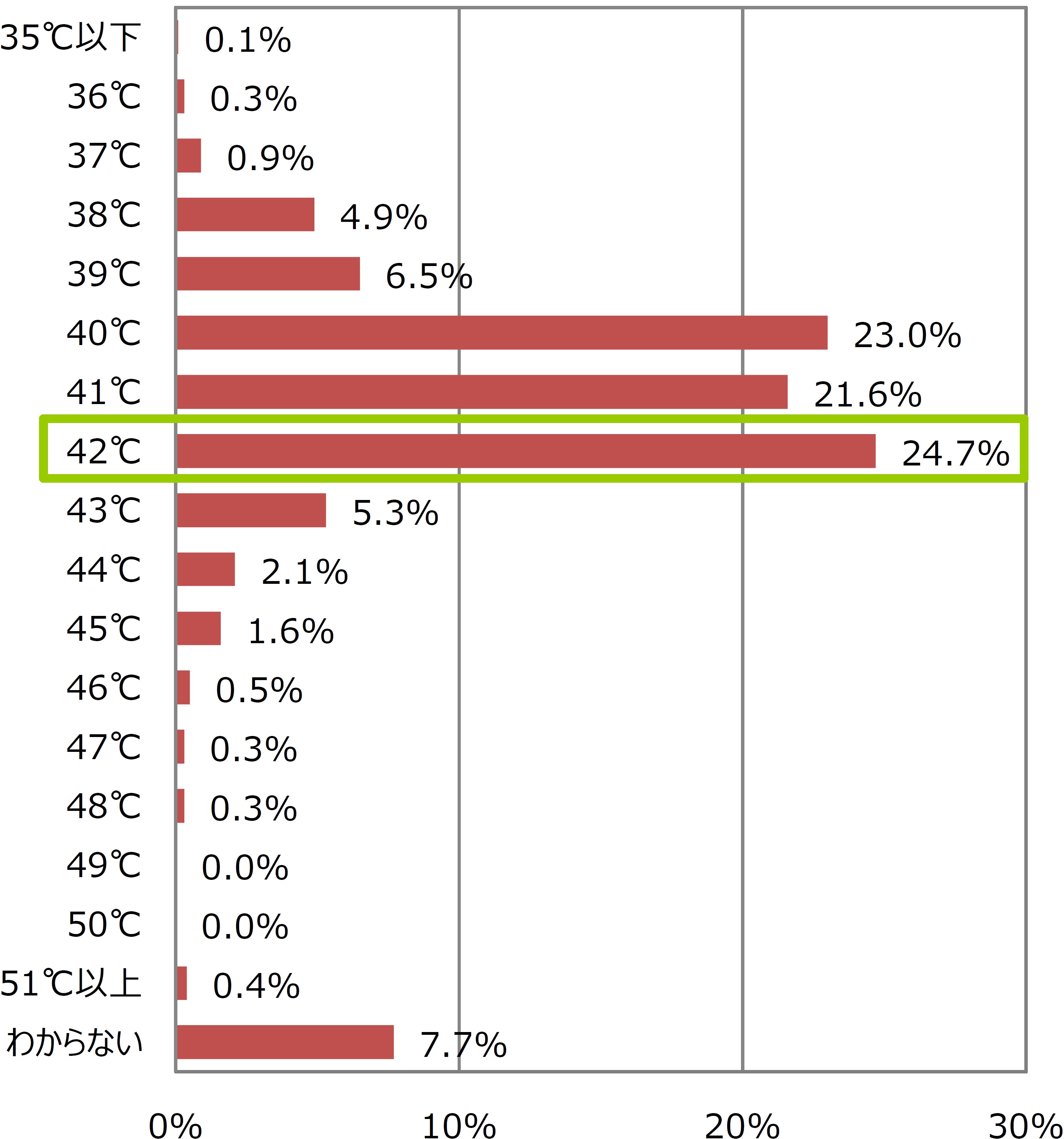 入浴時間の全国平均は15.2分、浴槽の温度は42℃が最も多い結果に