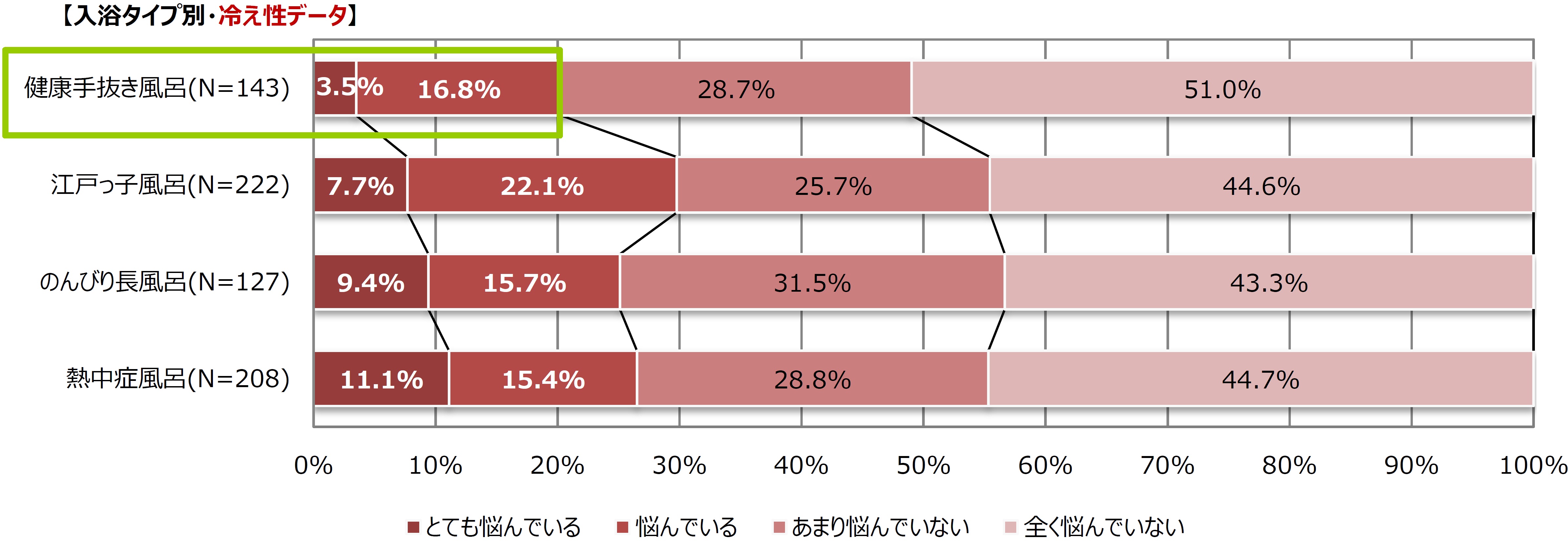 「健康手抜き風呂」の人ほど冷え性の悩みが少ないという結果に