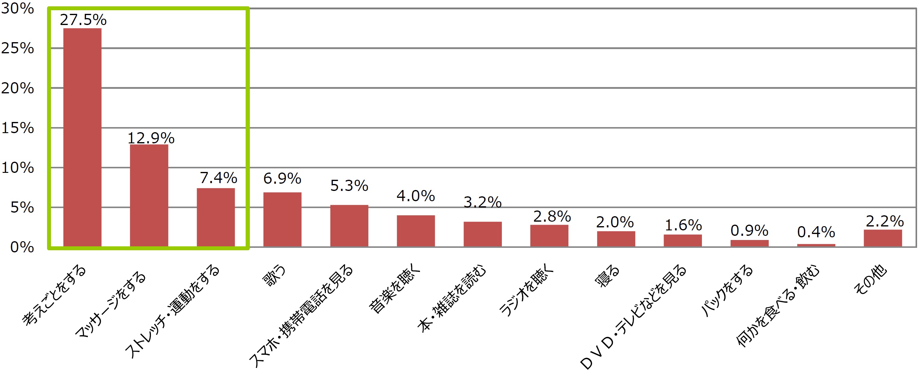 入浴中の過ごし方は1位「考えごと」、2位「マッサージ」、3位「ストレッチ・運動」