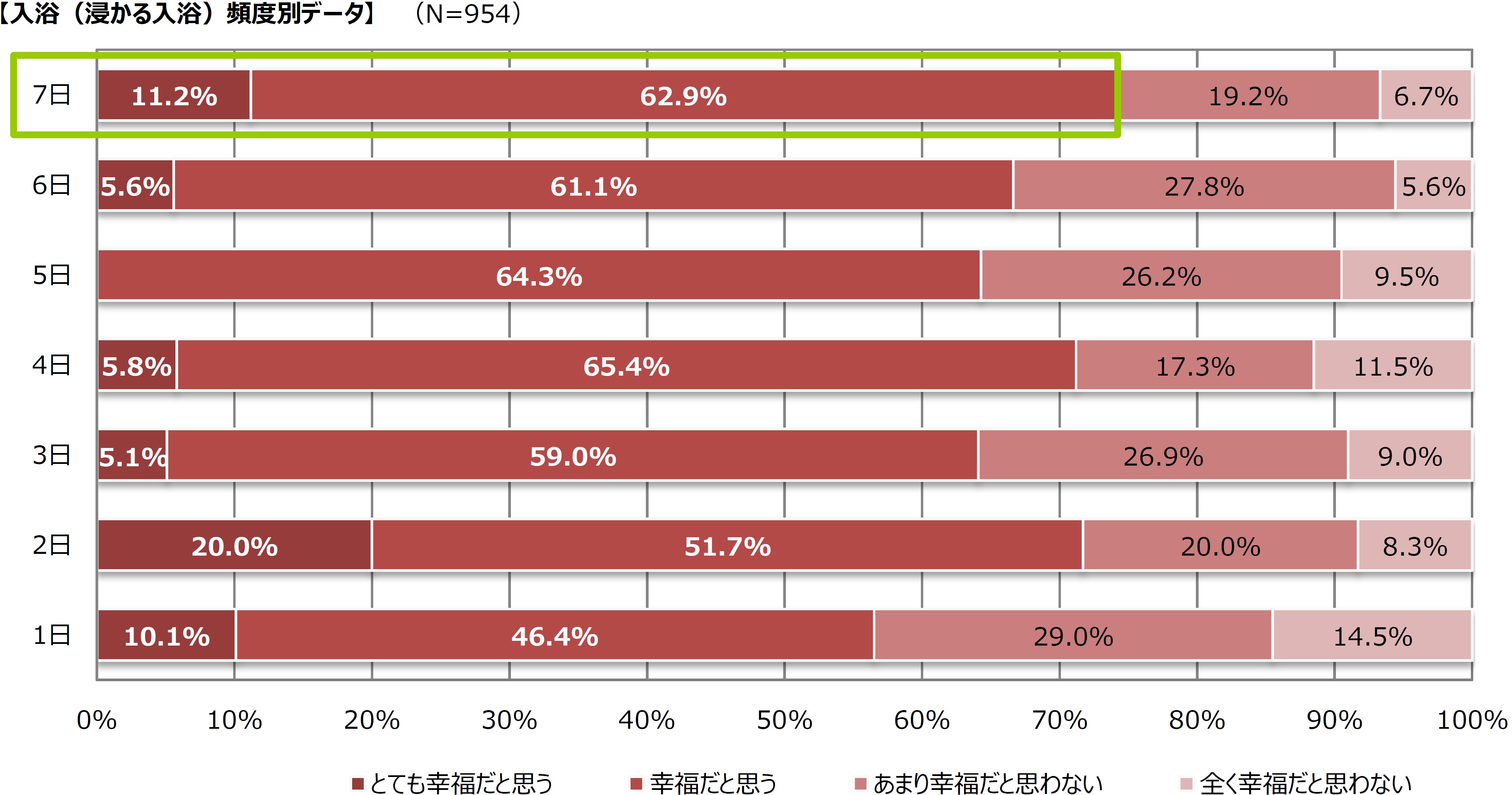 毎日浸かる入浴を行っている人のうち幸福だと回答した人は7割以上