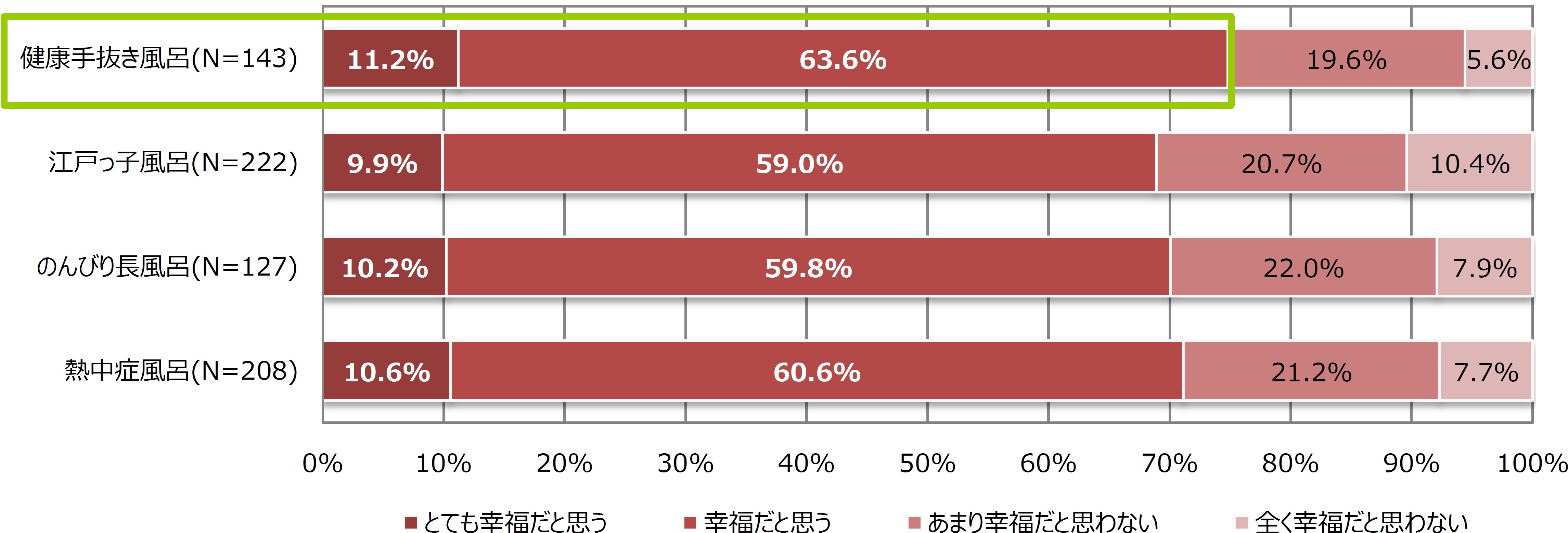 「健康手抜き風呂」を実践している人ほど幸福に思っている人が多い傾向