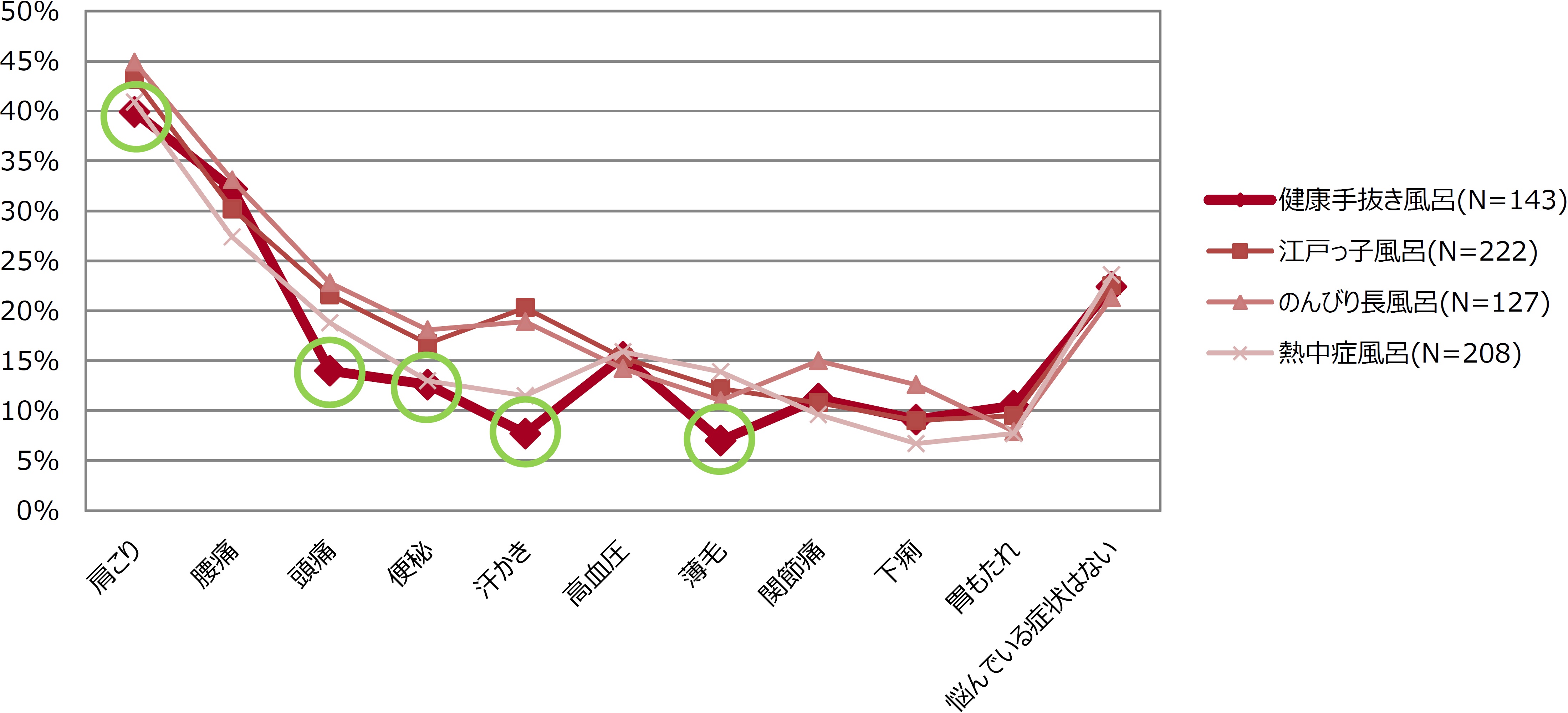 「健康手抜き風呂」の人ほど、頭痛や便秘、薄毛の悩みが少ない傾向