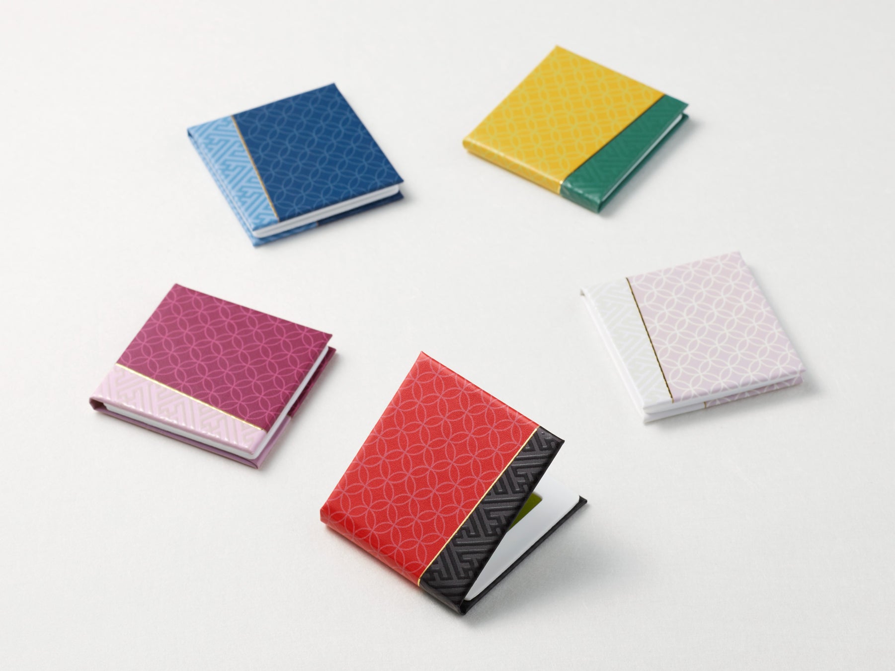 平安の王朝貴族の衣装に見られる「かさね色」を、紅の携帯用・紅板に展開した5つの小町紅。