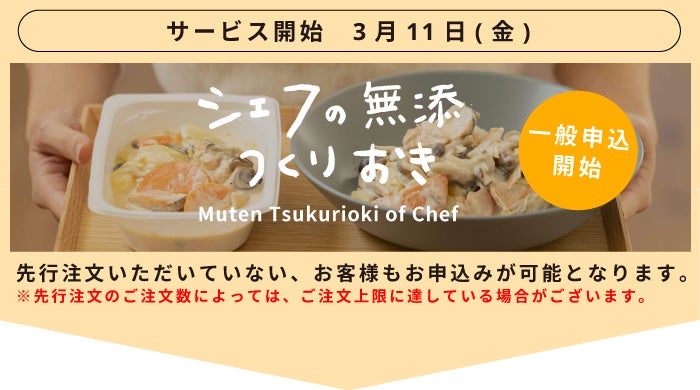 『FIT FOOD HOME』より、出来立てのお惣菜を週替わりでご自宅にお届けする新サービス「シェフの無添つくりおき」の販売開始に先立ち、先着300名様限定で先行注文を受け付けます。