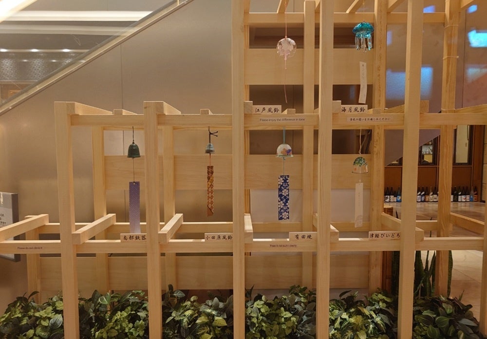 実際の風鈴(江戸風鈴、海月風鈴、南部鉄器、小田原風鈴、有田焼、津軽びいどろ)をうちわで扇いで音色を楽しんでいただける特設コーナーもございます。