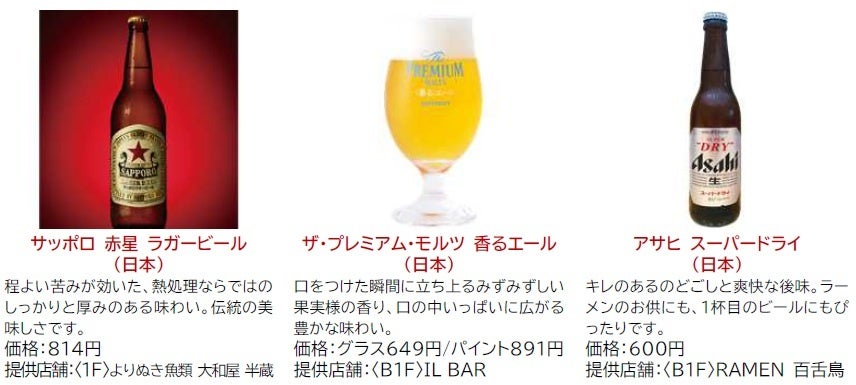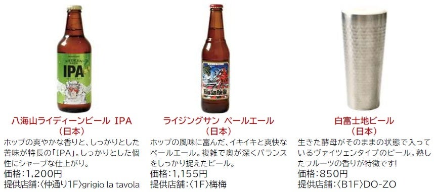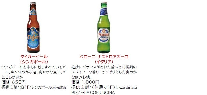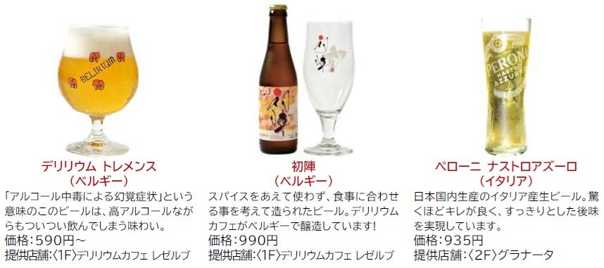 「世界を味わうBEER FESTA」では、館内各店が取扱うイタリア・オランダ・シンガポール・中国・ベルギーに、日本を加えた世界6カ国・20種類のビールをセレクト。国内外の多彩なビールを味わえる本フェアは、ビール愛好家にとって見逃せない機会です。