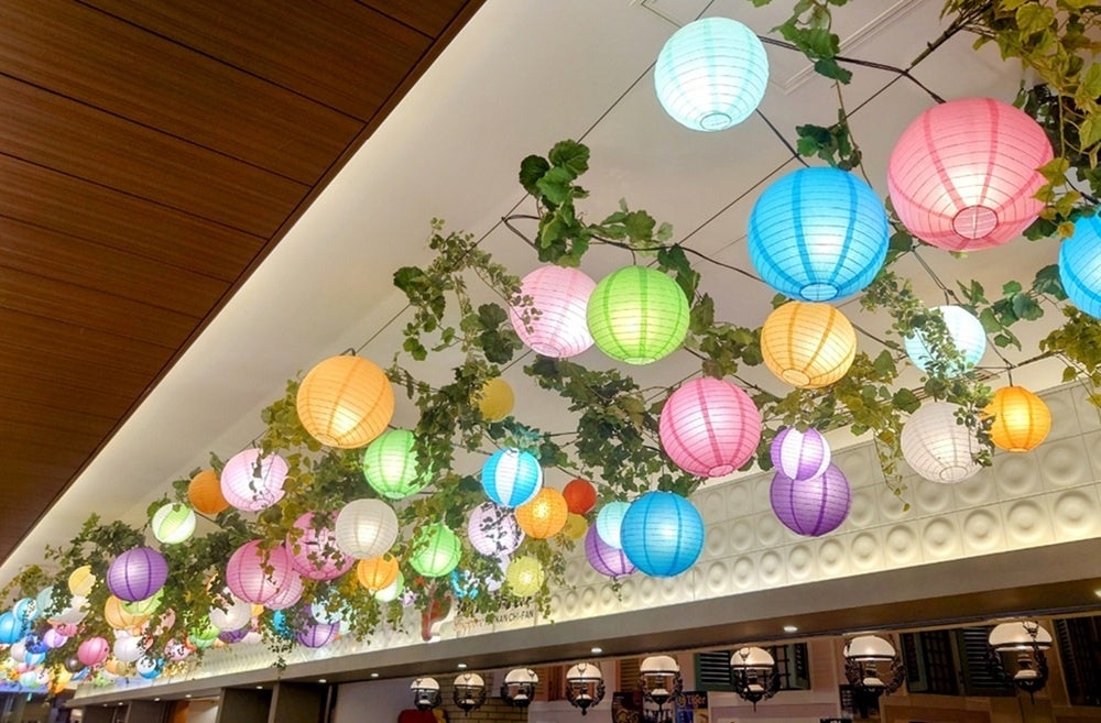 赤坂Bizタワーの新スポット⁉ 地下1Fエリアには色鮮やかでPOPなカラーのちょうちん展示がスタート。頭上に並ぶ約130個のちょうちんは圧巻です。カラフルでどこか懐かしさもあるちょうちんが皆様をお出迎えします。