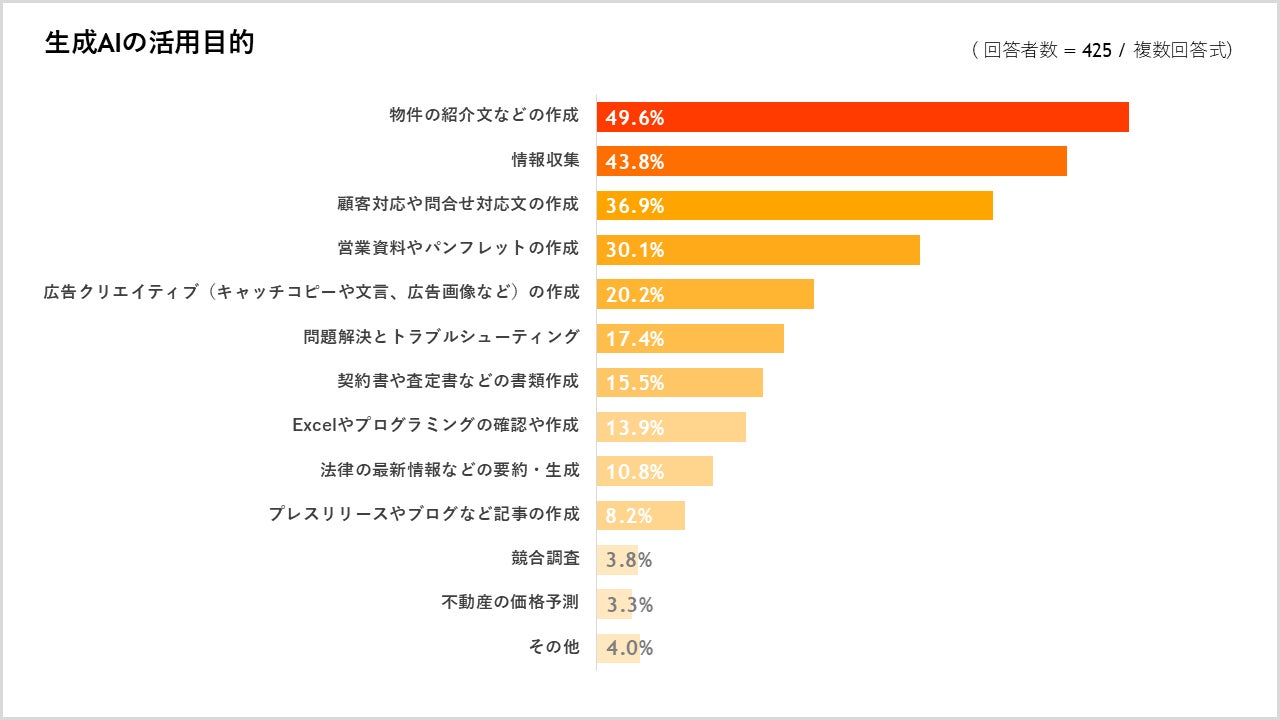 ChatGPTなど生成AIの活用が増加、物件紹介文の作成や情報収集などに利用