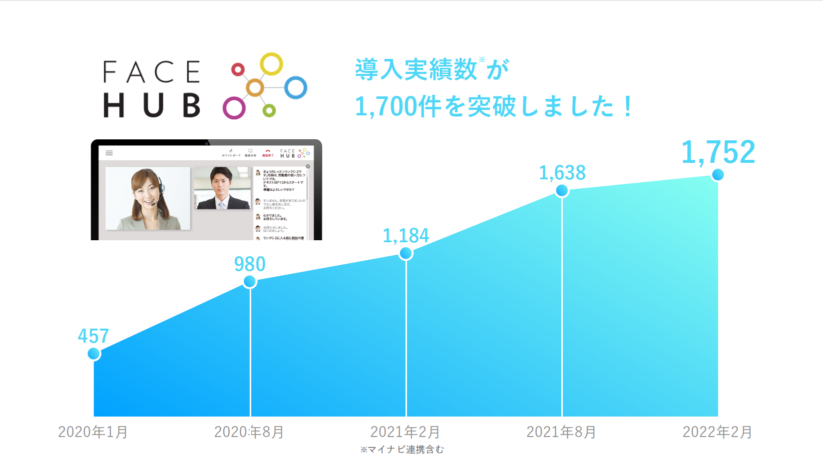 また2021年3月には株式会社マイナビの子会社となり、マイナビが運営する各サービスとの連携を強化し、シームレスなオンラインコミュニケーションを創出しています。その結果、「FACEHUB」の導入実績数は前年同期比で148%増となりました。(連携含む)