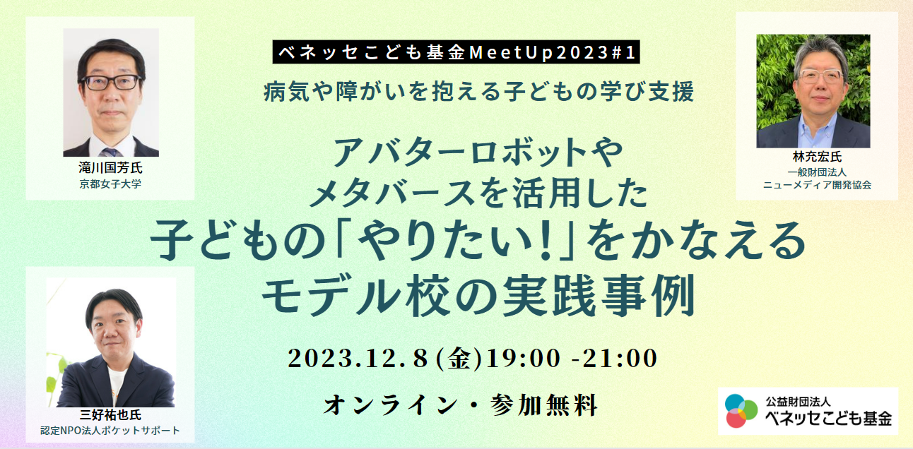 12月8日、ベネッセこども基金MeetUp2023をオンラインで開催します。病気や障がいを抱える子どもの学び支援について、多様な立場の参加者と一緒に考えます。