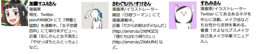 SNS で人気の漫画家、加藤マユミさん・さわぐちけいすけさん・すれみさんが、あなたのエピソードを 4 コマ漫画にする Twitter キャンペーンを開始!