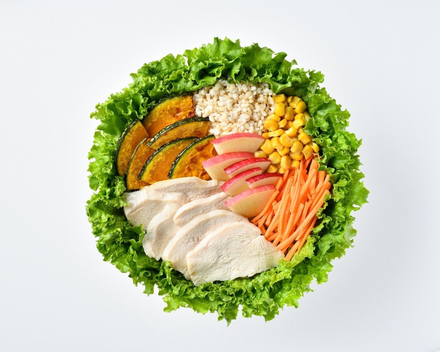野菜・肉・玄米・果物を一度に摂れる、忙しい人のための栄養バランスを考えたサラダ。