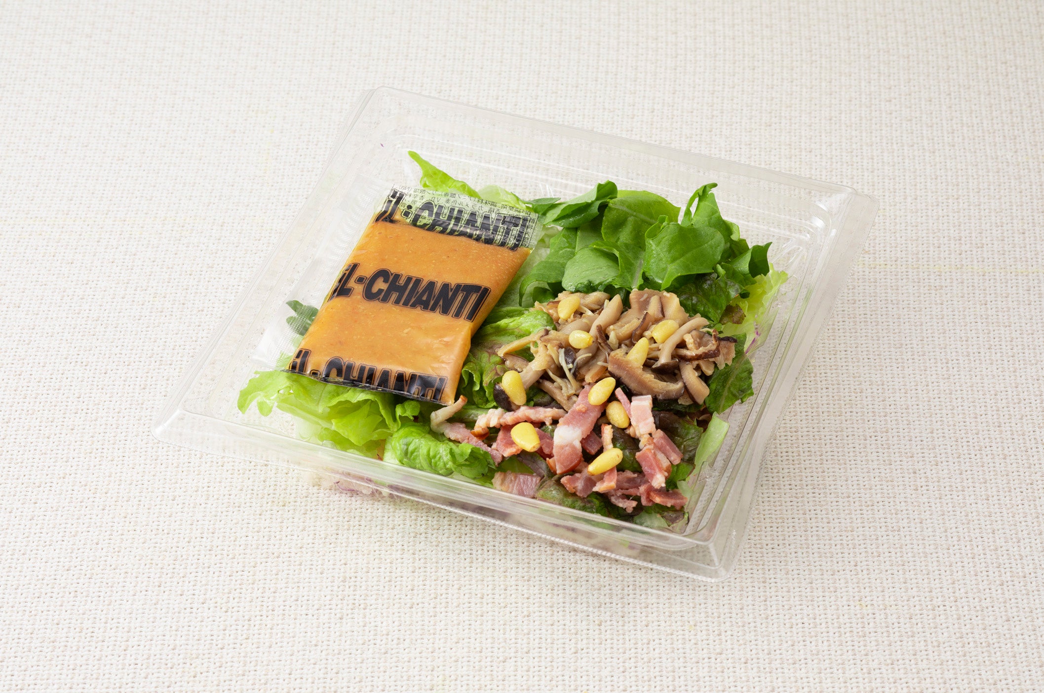 店舗で提供している「森のサラダ」と「ベーコンソテーと松の実のサラダ」をもとに、イトーヨーカドーオリジナル商品として開発。きのことベーコンのソテーに、松の実を加えて、イタリアン野菜であるルッコラをトッピング。適度な塩気が食欲をそそり、『イルキャンティ ドレッシングタイプ』との相性も抜群です。
