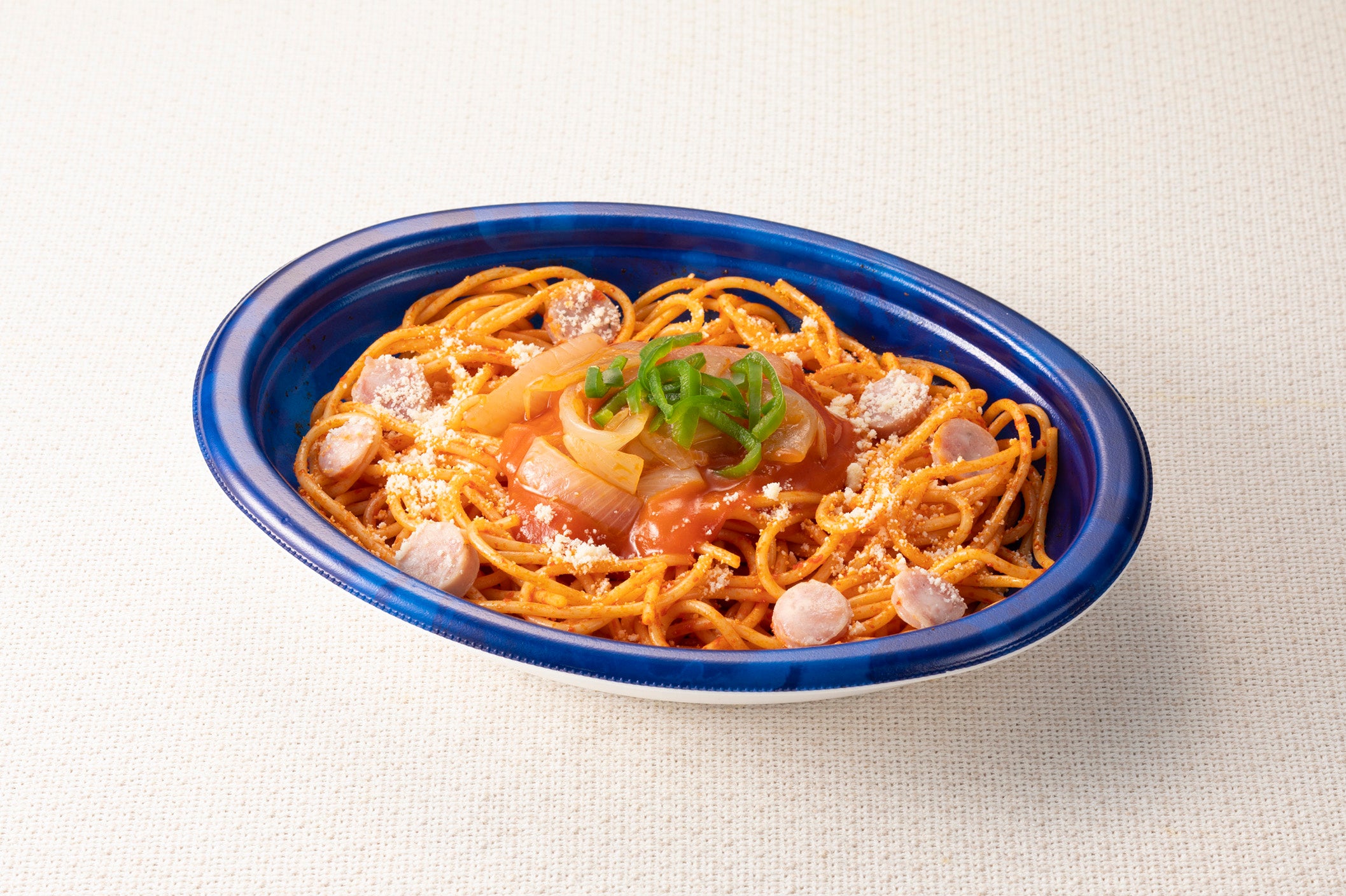 店舗で提供しているメニューをもとに開発した子供から大人まで楽しめるナポリタンです。トマトの酸味を適度に飛ばした甘酸っぱいトマトソースとタンパク質含有量が多いデュラム小麦を原料とした食感の良いパスタ麺は相性抜群です。