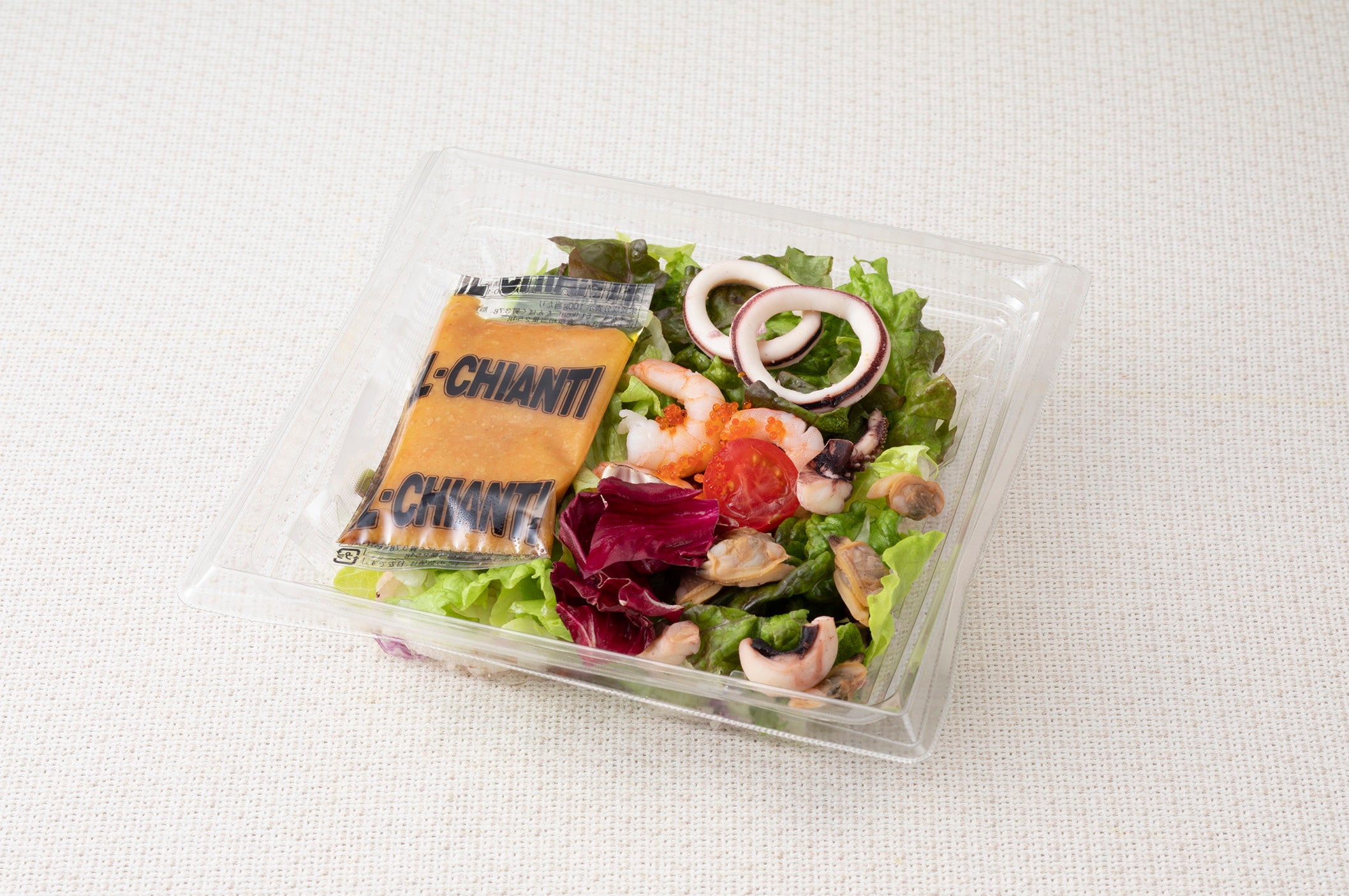 初来店の方がほぼ必ず注文する創業当時からの人気No.1メニュー「カリブサラダ」をもとにして開発。宝石のようにちりばめられた海老、いか、あさりなどのシーフードをトッピングしています。『イルキャンティ ドレッシングタイプ』をかけることで、前菜のように楽しんでいただけます。