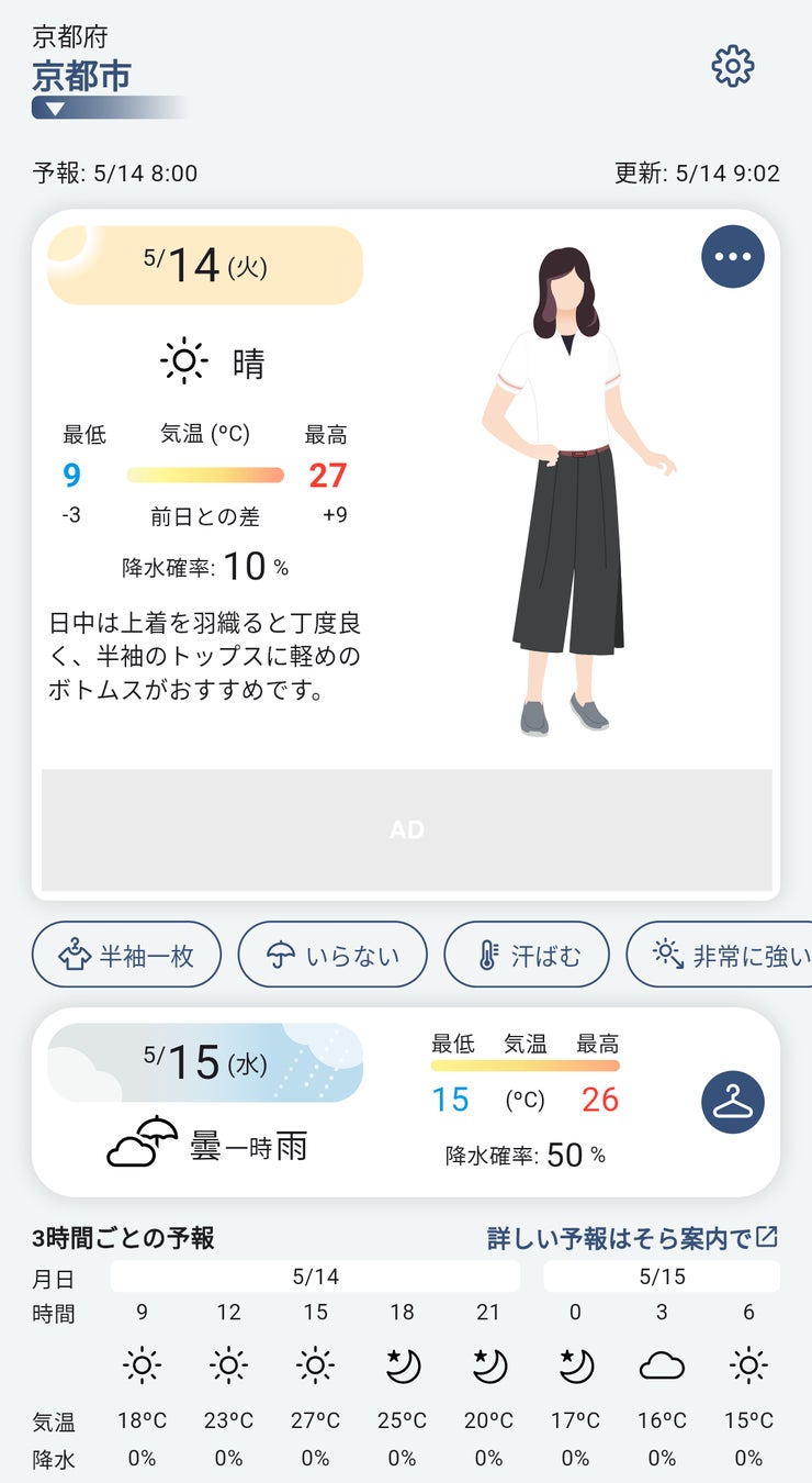 株式会社そらかぜ(京都市中京区、代表取締役 伊藤啓。以下、当社)と一般財団法人 日本気象協会(本社:東京都豊島区、理事長 渡邊一洋)は、AIを活用した新しいアプリ「そらコーデ」を5月22日にiOSおよびAndroid向けにリリースしました。このアプリは、ユーザのプロフィールと気象情報を組み合わせて、着回し感覚で毎日のコーディネートを提案します。