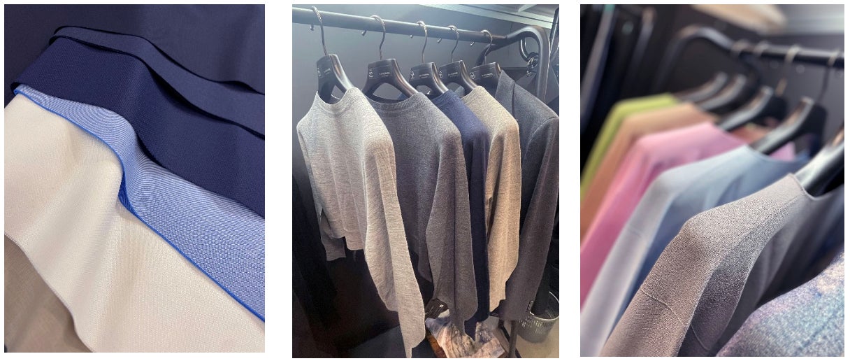 今回第40回ミラノ・ウニカにおいても、当社のパートナーであるCM Tessuti社のブース内でプラチナウール™の春夏コレクションの展示を行い多くの来場者にプラチナウール™を実際に手に取って体感いただきました。