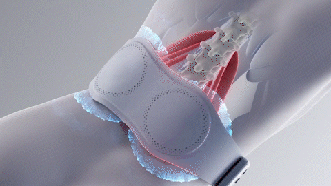 グラフェン瞬間温熱+低中周波をミックスした独自EMSプログラムを搭載した次世代ウェアラブル機器です。